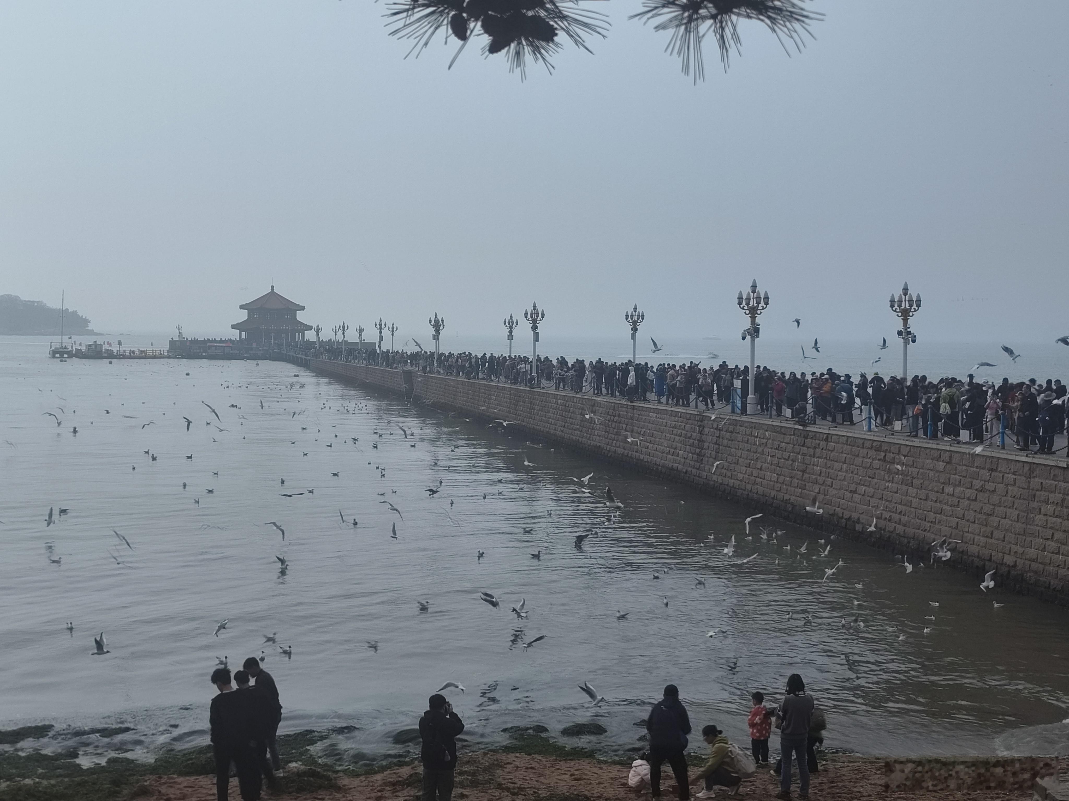 栈桥风景依旧上午辰时,栈桥上已经是游人如织,熙熙攘攘。尽管海鸥有点少了,但依然与
