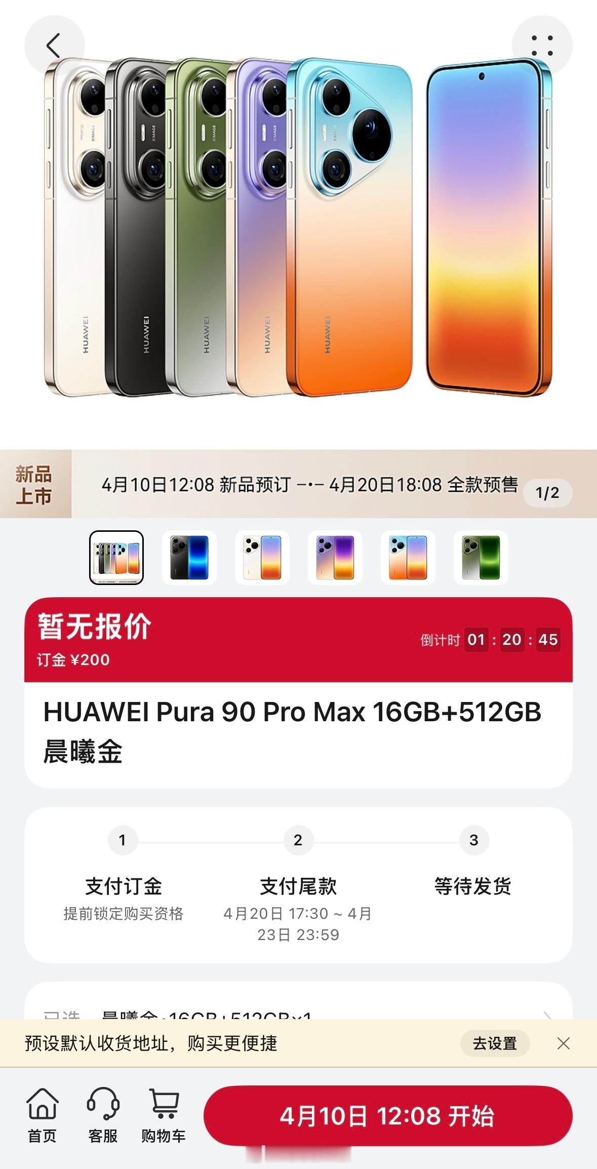 Pura 90 Pro Max:曜石黑、晨曦金、霞光紫、橘子海、翡翠湖5个颜色,12+256GB/12+512GB/16+512GB/16GB+1TB四个存储版本。