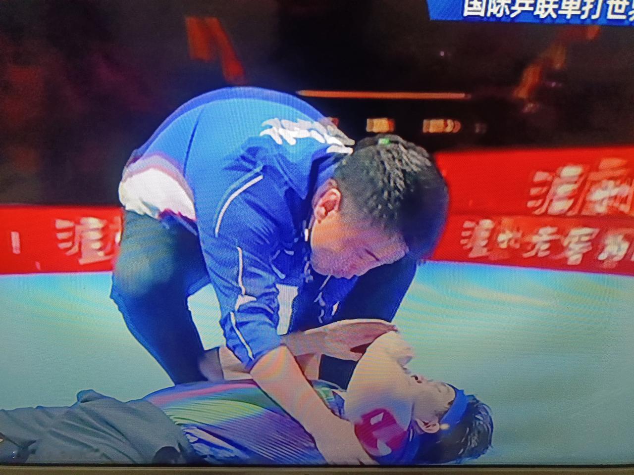 相信他们和球迷们一样,这场比赛是看得心惊肉跳血压飙升!当王楚钦赢下最后一分夺得冠军,累得不由自主地躺在地板上时,他们应该是如释重负然后也是激动万分!