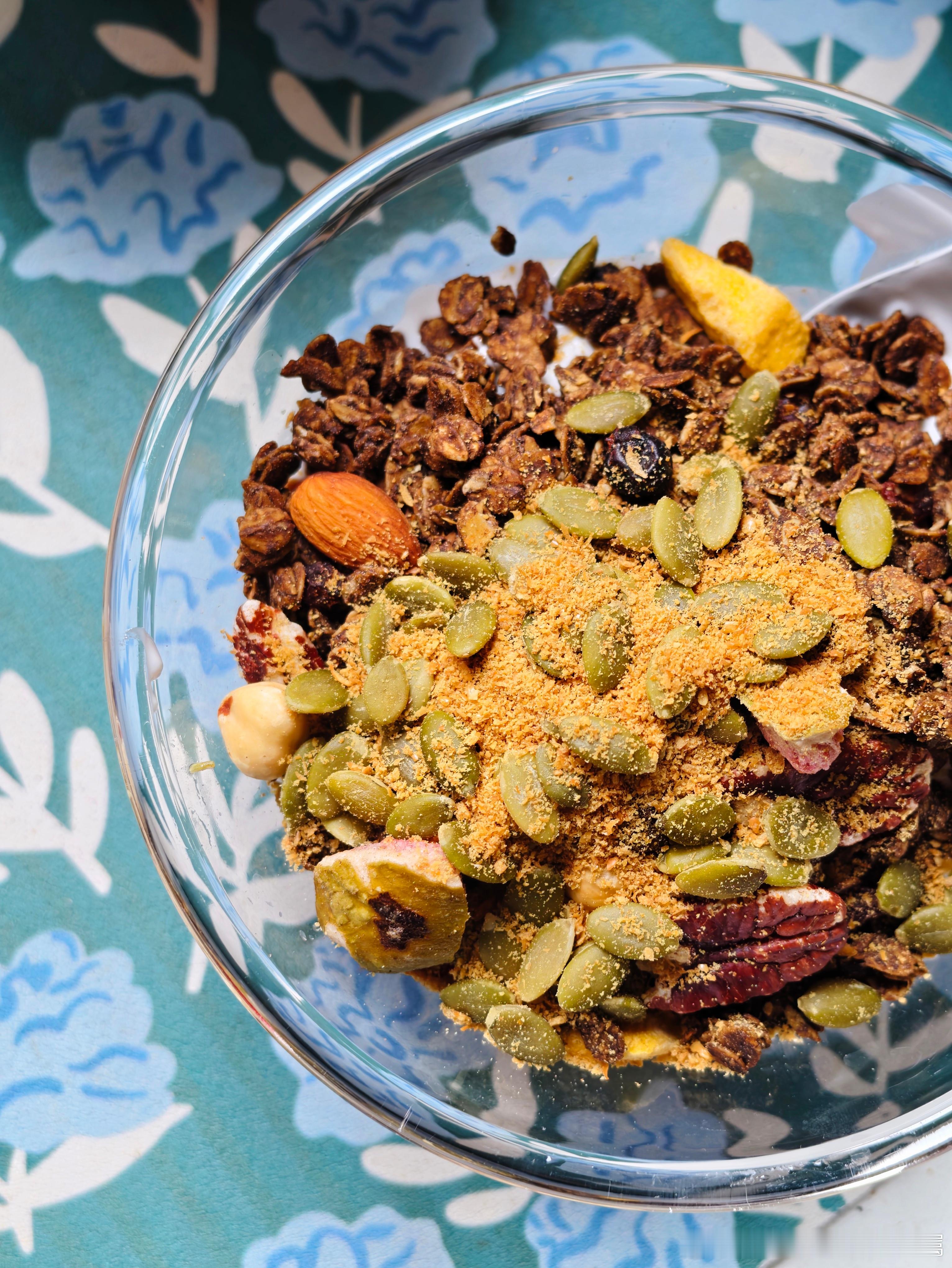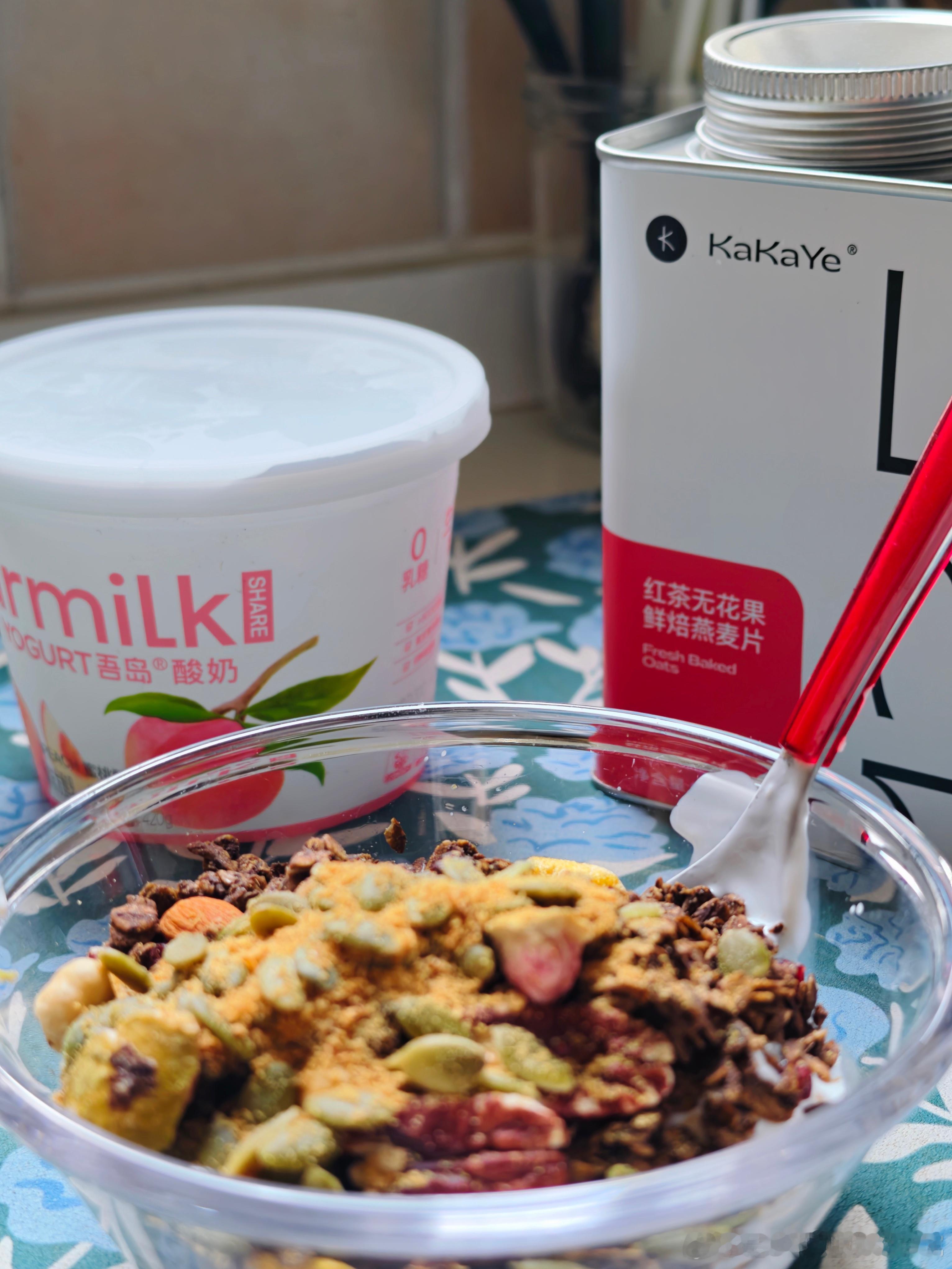 我忘记了家里还有烘干好的燕麦碎果断开吃,配上酸奶真的无敌了。