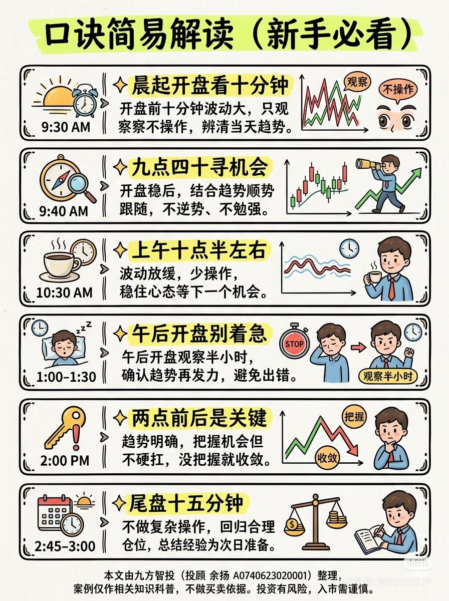 做T可不是盲目买卖,踩对时间点才是关键!整理了超实用的核心做T时间口诀,新手直接照着记,避开瞎操作的坑👇