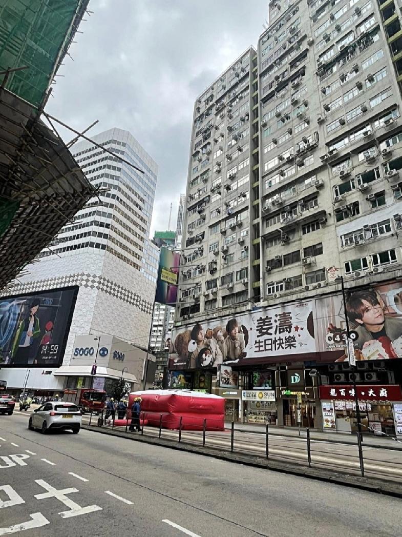 香港今(10日)午2时许 , 一名女子潜登铜锣湾怡和街香港大厦天台起跳, 街坊发现报警,消防员到场铺气垫戒备,警方谈判专家到场劝阻,受事故影响,现场交通受阻。