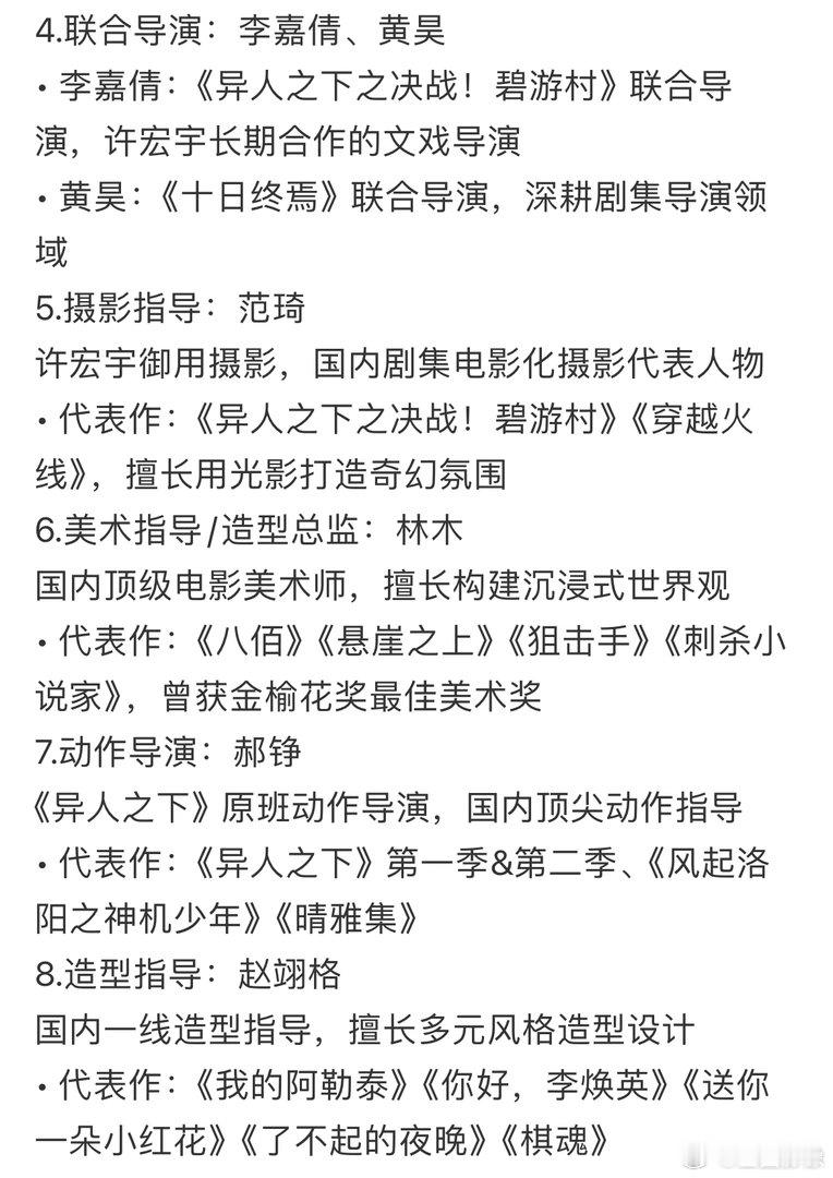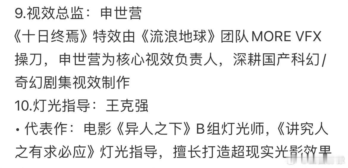 肖战十日终焉登世趋十日终焉幕后班底,看一下它们的作品就知道是有备而来了。这个IP对应的受众市场一定是相对年轻化的,每个部门负责的模块一定都是奔着打造无限流题材最顶级成品效果。这个幕后阵容的厚度,确实是夯爆了。而且有了肖战这位青年视帝级演员坐阵就是夯上加夯,导演许宏宇在肖战拍摄电影得闲谨制期间是剪辑顾问,跟组很久。他和肖战的默契程度对十日终焉一定是1➕1>2