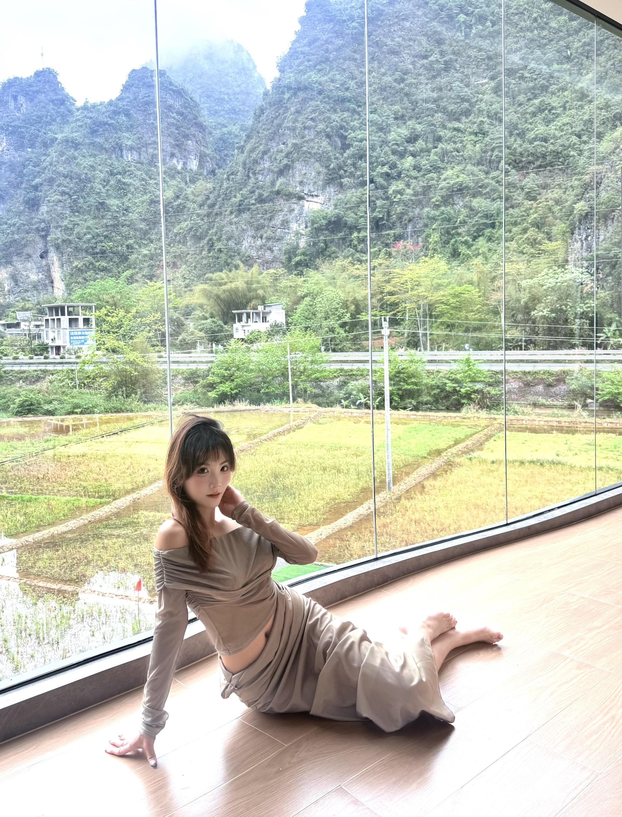 一醒来拉开窗帘引入眼帘的是山清水秀。