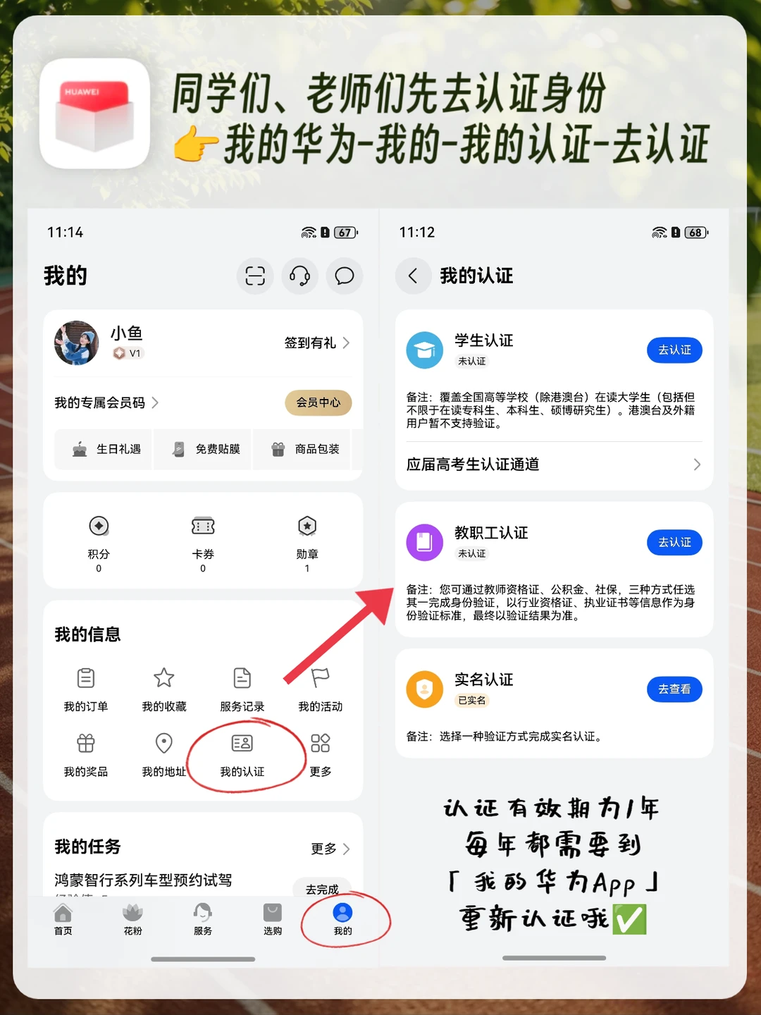 1️⃣ 我的华为App > 我的 > 我的认证