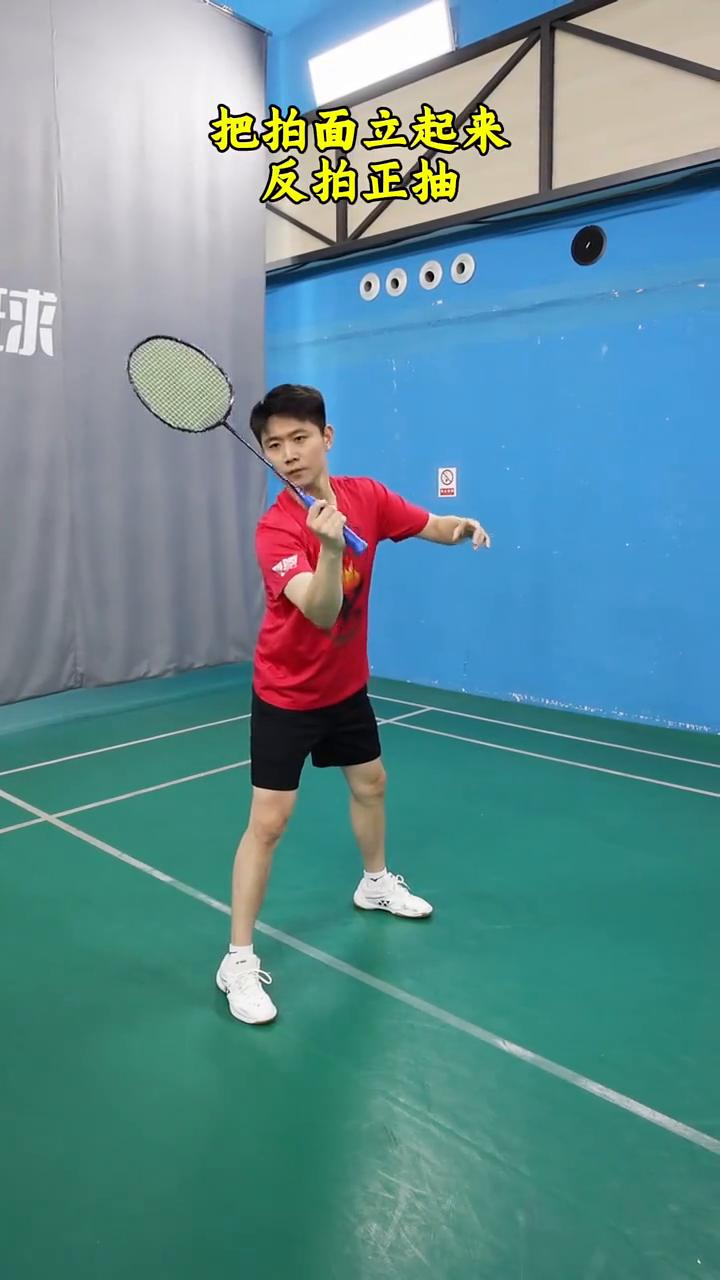 ·如果杀球冲着右肩来,别让肩把拍面立起来,反拍正抽。