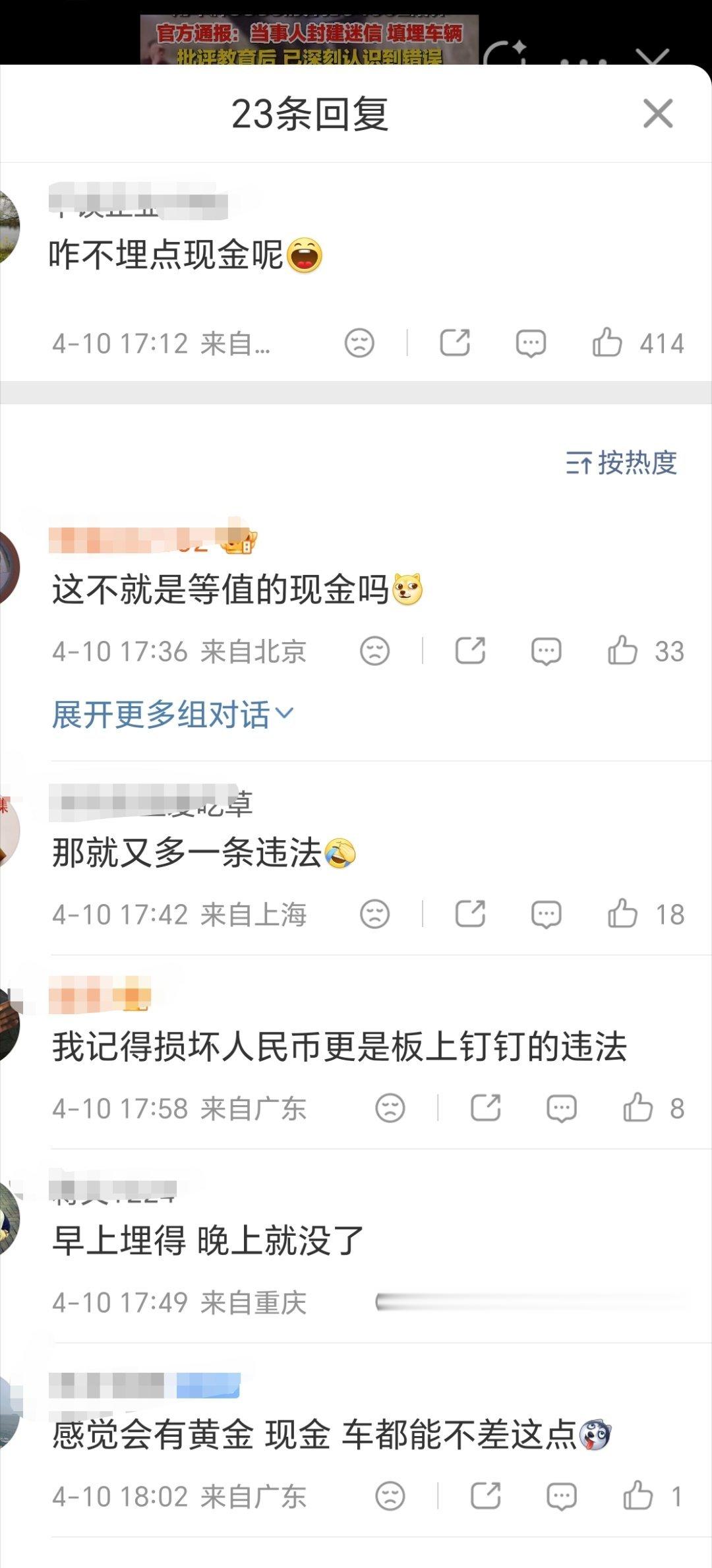 官方通报填埋奔驰车祭祀有钱淫太任性了!这不光是封建迷信,这是炫呀看评论区有网友表示“咋不埋点现金呢” 哈哈现金不行,整点金砖会不会要好些