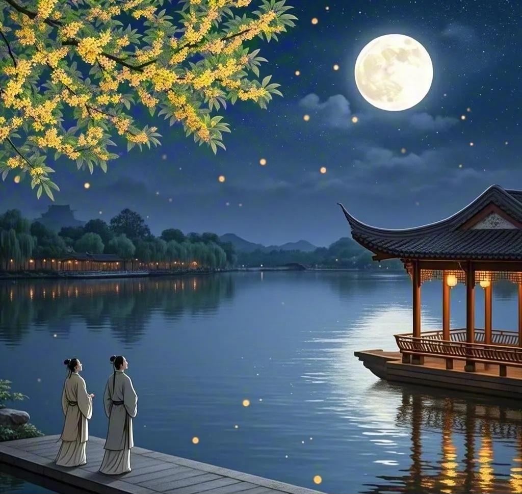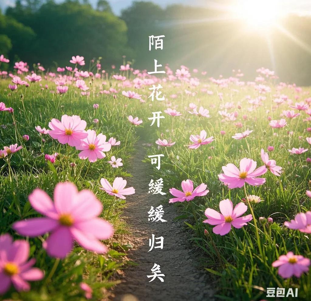上联:碧水悠悠唤春归,畅谈下联青山隐隐邀秋至