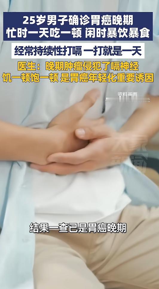 其实说白了,他的遭遇并不是偶然,很多人都跟他一样,觉得年轻就是资本,胃是铁做的,饿一顿饱一顿没关系,平时胃不舒服打嗝,都觉得是小毛病,忍忍就过去了。