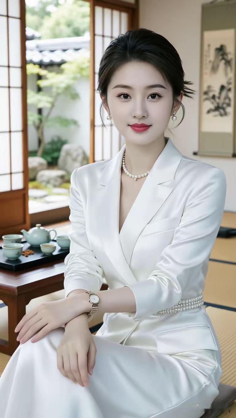优雅白领风,珍珠项链搭配白色西装,尽显知性美!