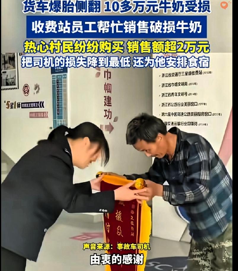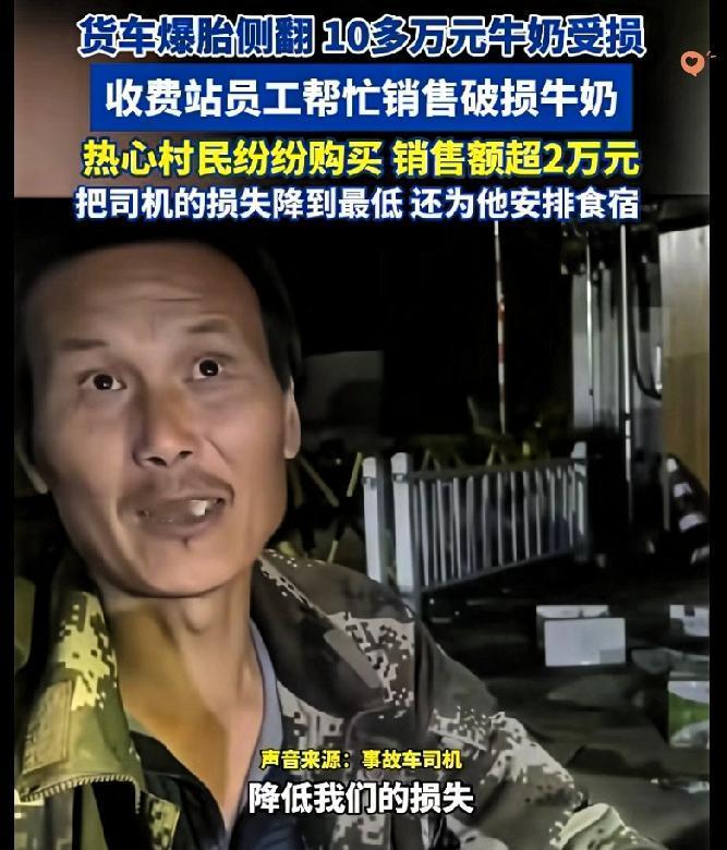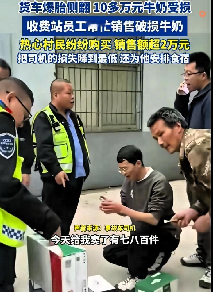 河南货车司机高速侧翻,十万牛奶受损,硬汉当场崩溃落泪,没想到收费站的举动直接暖哭全网。