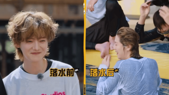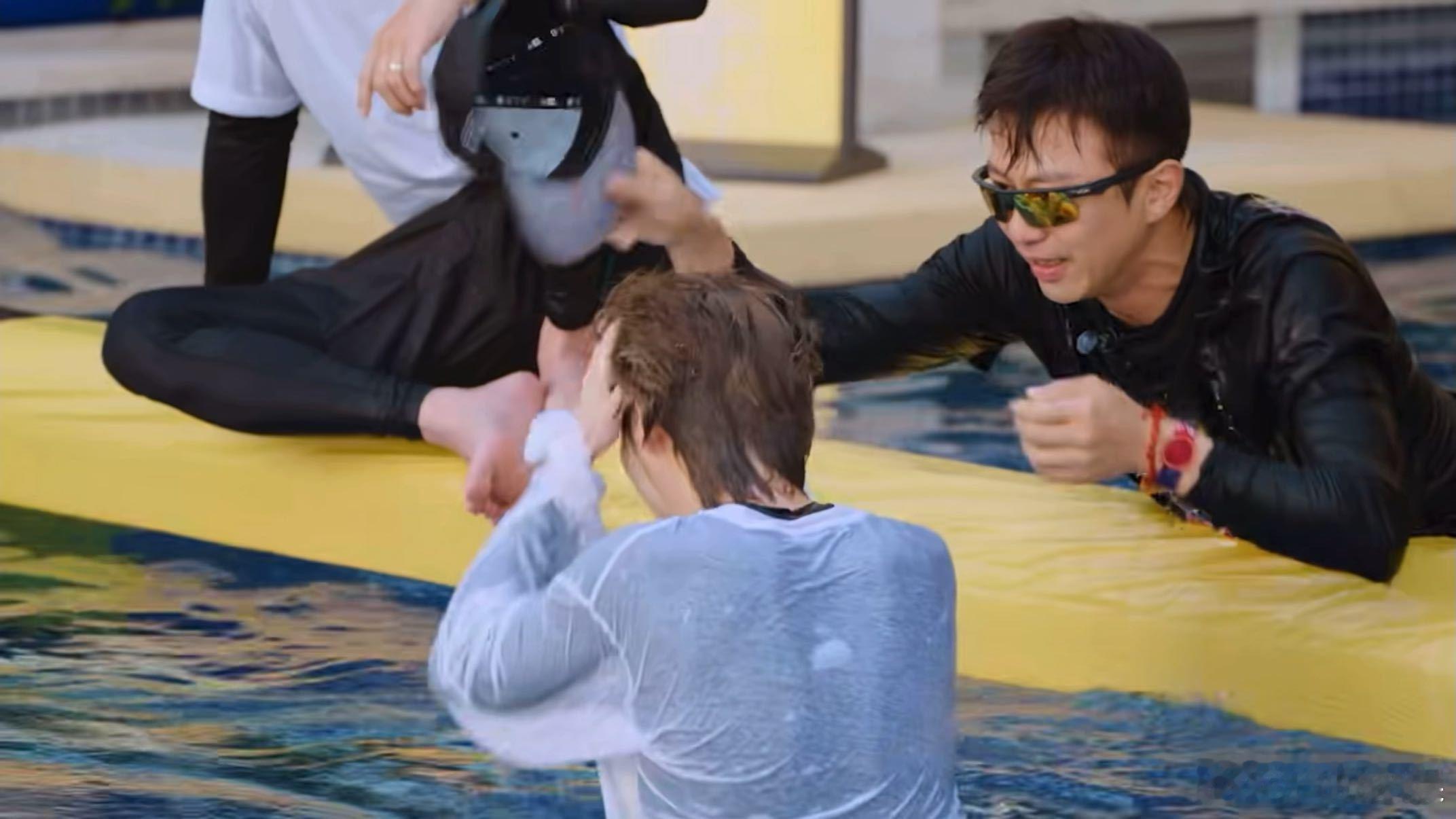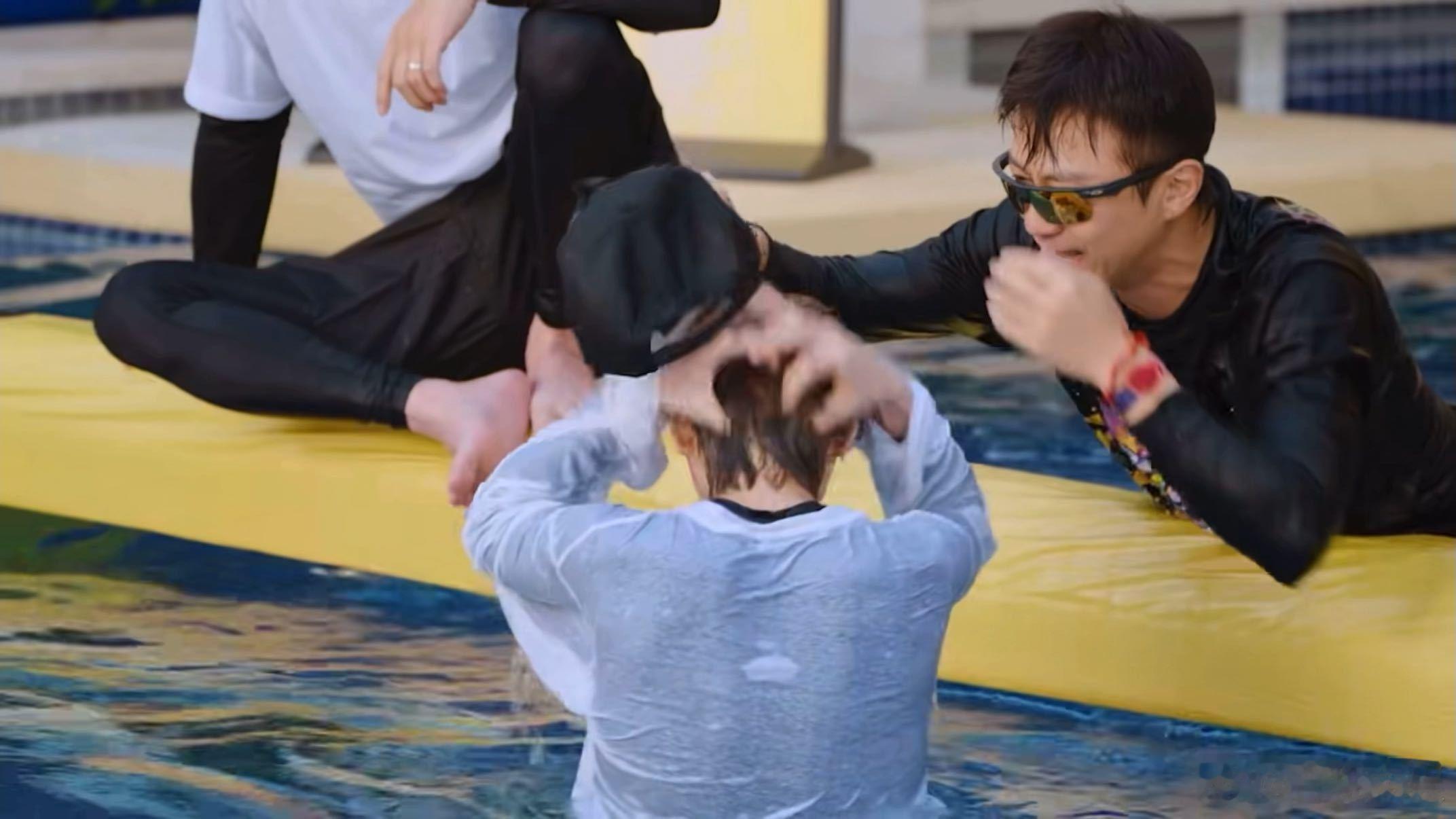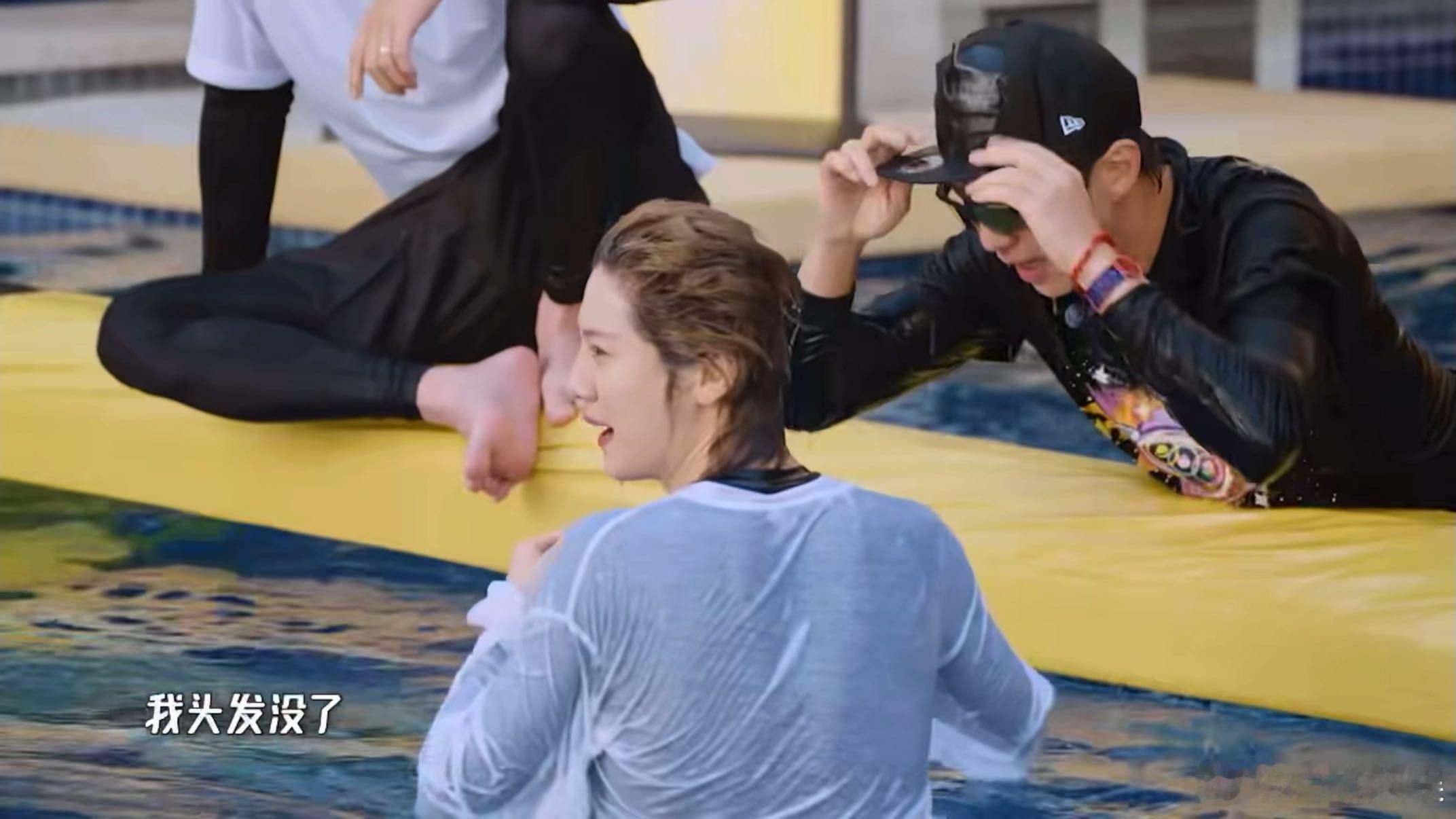 邓超想给鹿晗戴帽子邓超想把自己帽子给鹿晗哈哈哈哈哈 鹿晗落水,超哥的帽子比他的头