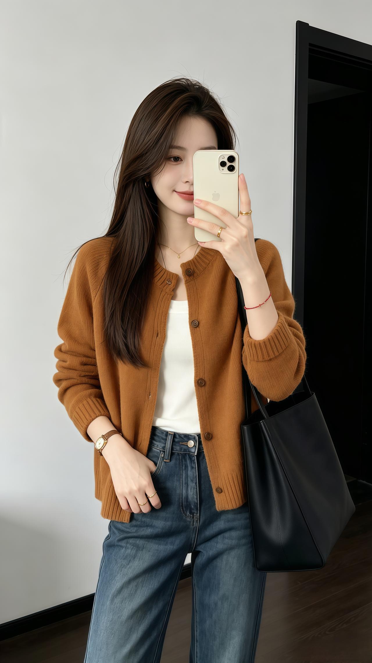 慵懒短款毛衫 软糯小开衫 百搭质感韩系针织开衫 穿搭今天穿什么