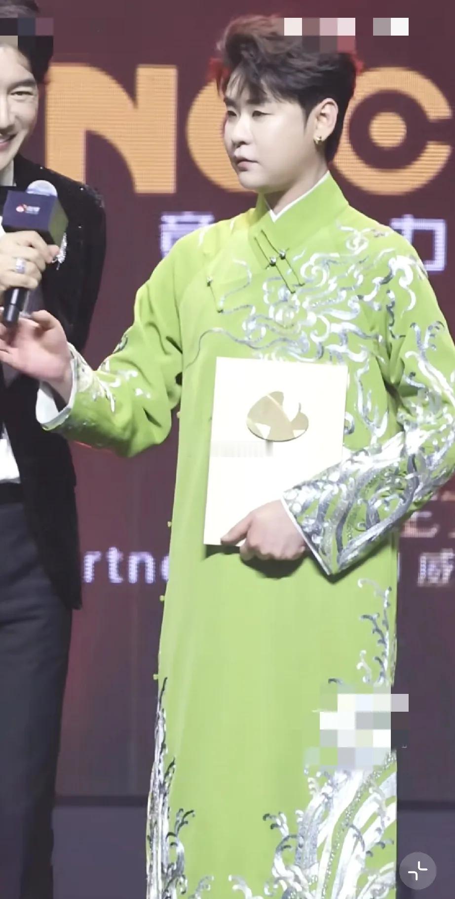 张云雷穿了秋香绿银线刺绣大褂,胖了好多有点发腮,侧面看有重下巴,要是再瘦点就好了