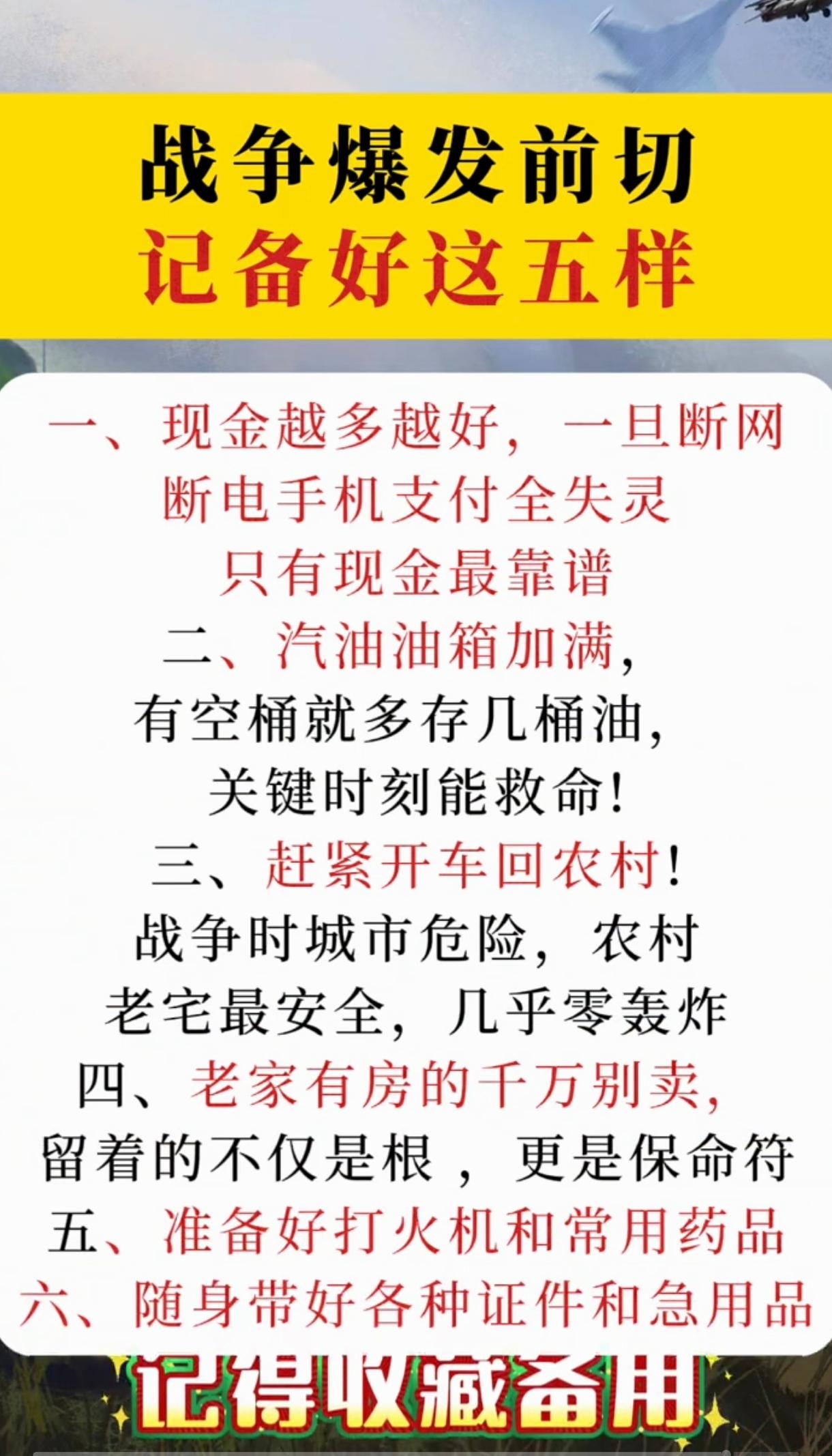 一,现金。就是鼓励留点现金,方便使用,这点我不认可,理由是小规模战争根本影响不了支付系统,即便导弹给阿里巴巴总部炸了,还有云闪付支付,如果谁都无法支付,这地球估计也消失了。