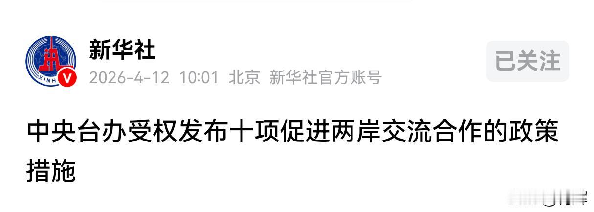 通水通电通桥!郑丽文访问最后一天,大陆发布实质性措施 4月12号是郑丽文此行访问大陆的最后一天。当天上午我国权威媒体发布了10项促进两岸交流合作的政策措施。