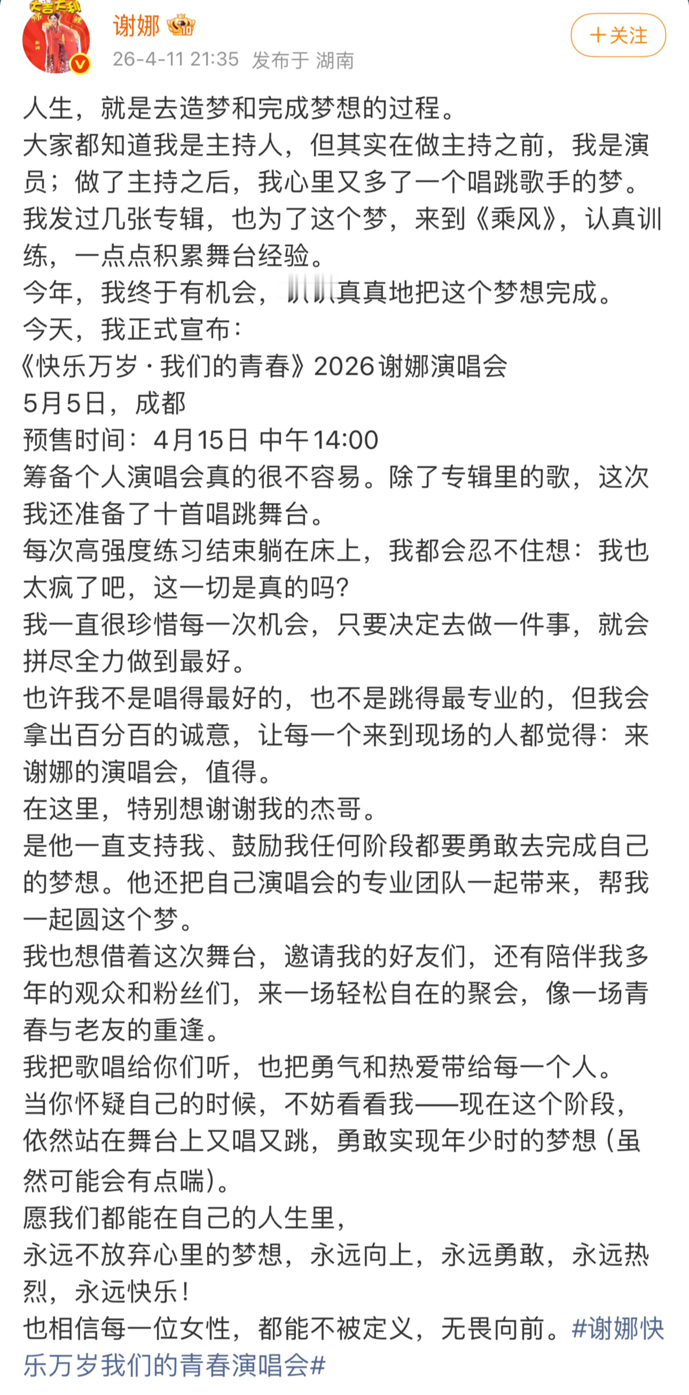 谢娜还是很有营销头脑的,宣传费都省了😂在张杰演唱会cp热舞预热,又在大爆综艺浪姐里直接官宣演唱会,现在还有谁不知道!