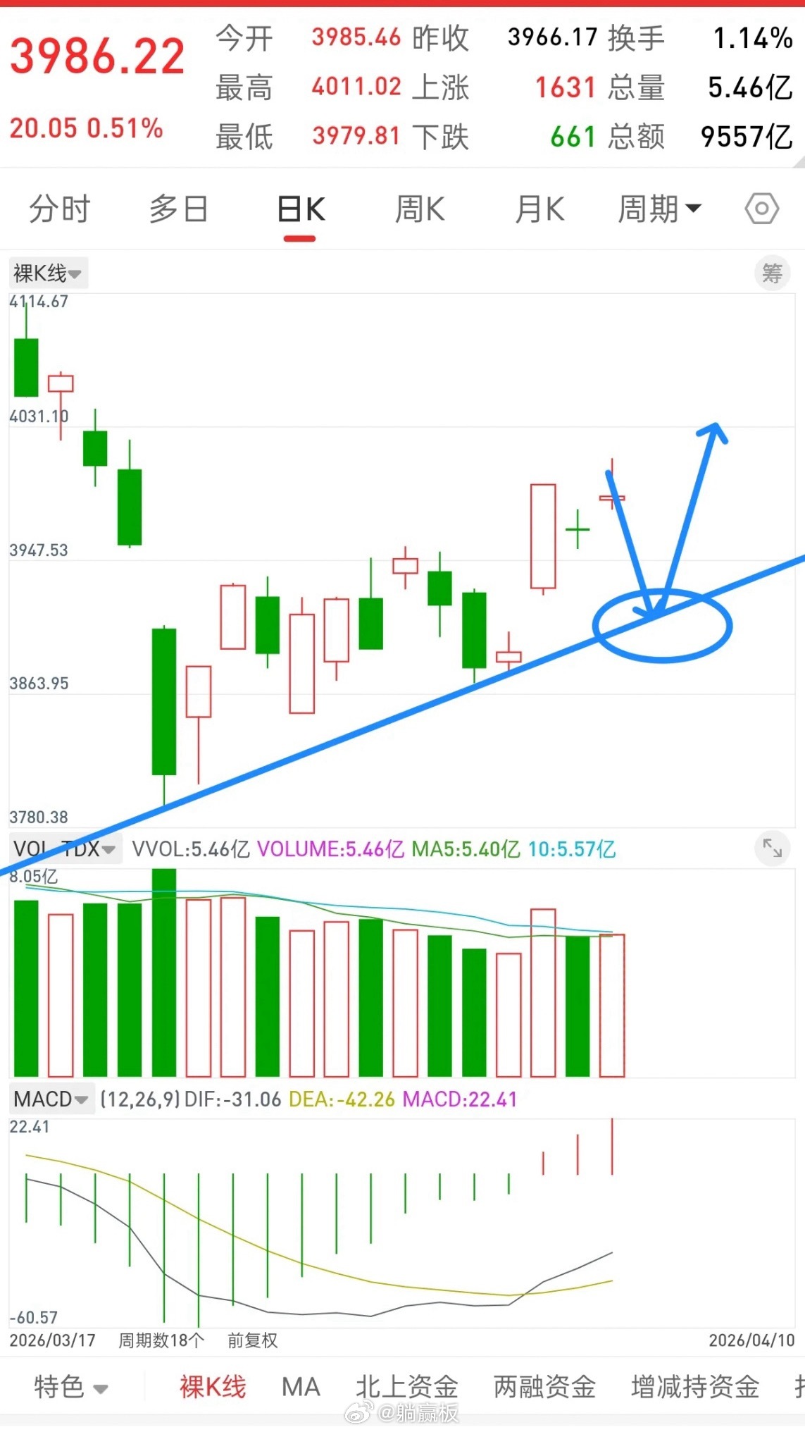 还有上周最后那两天,一直强调4000点附近,没有性价比,想开新仓等二次回踩,如果当时你跟着大部分人一起激动,那最终就是高位接盘。