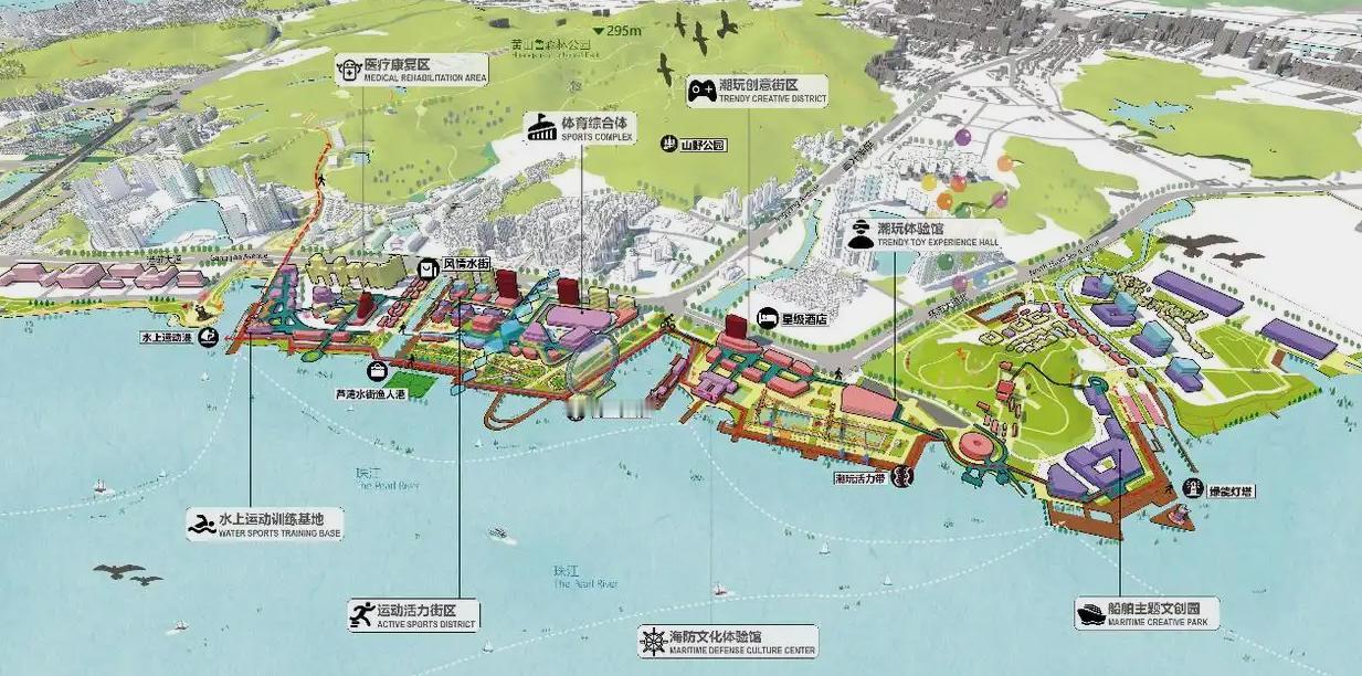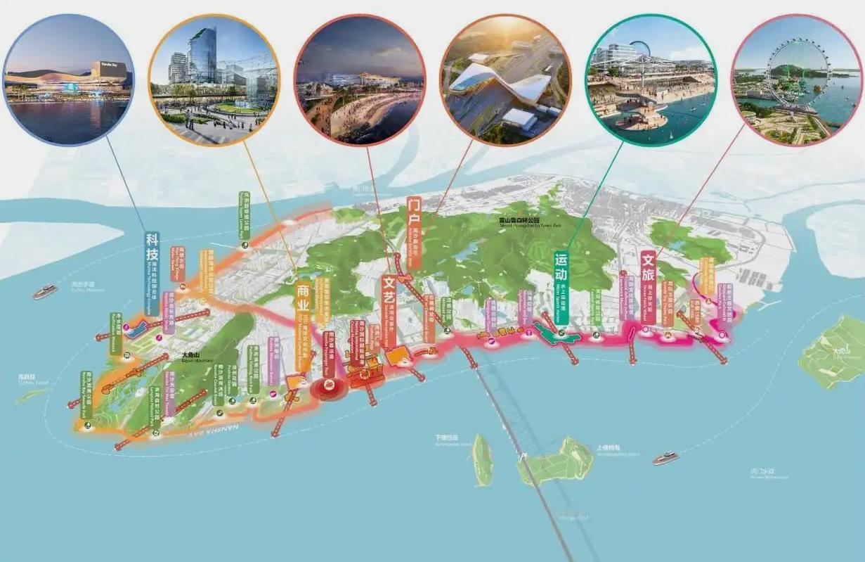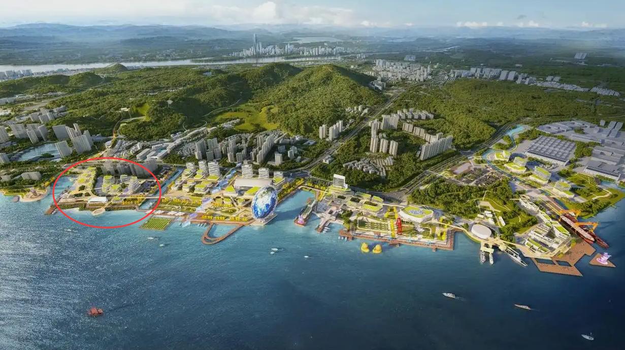 不过按照之前南沙湾的多个概念设计来看,这一排港前大道以东都是未来的国际休闲文化区来的,但是调研又提到要精准招商引资、引入优质项目。如果是未来有大计划的话,建议还是直接腾退留白,然后以横沥岛那种0.5级的临时开发,盘活成休闲公园。等待后续整体计划可能会更好一点。