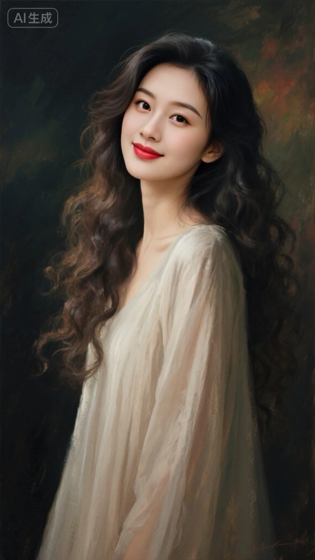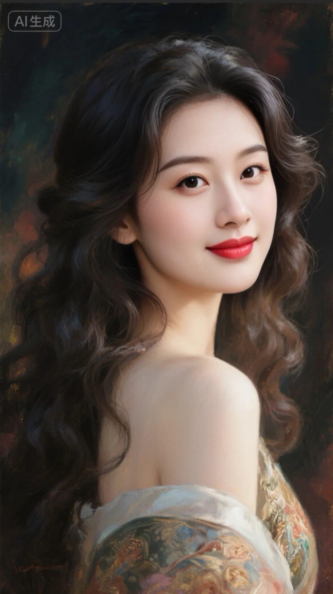 温柔眼神,红唇微启,优雅动人