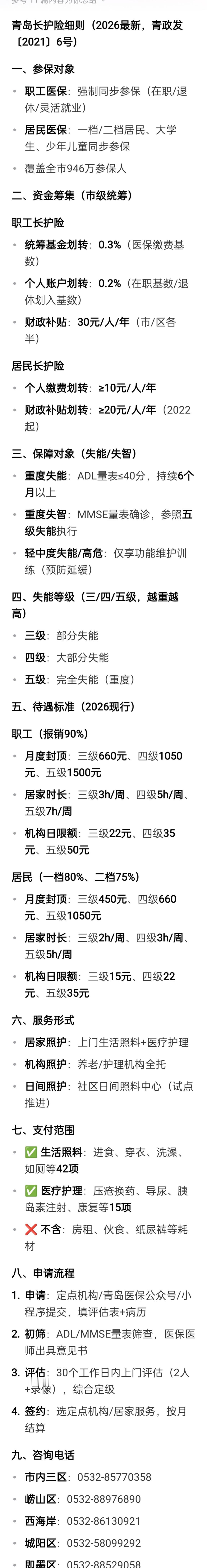 青岛长护险细则(2026最新,青政发〔2021〕6号)