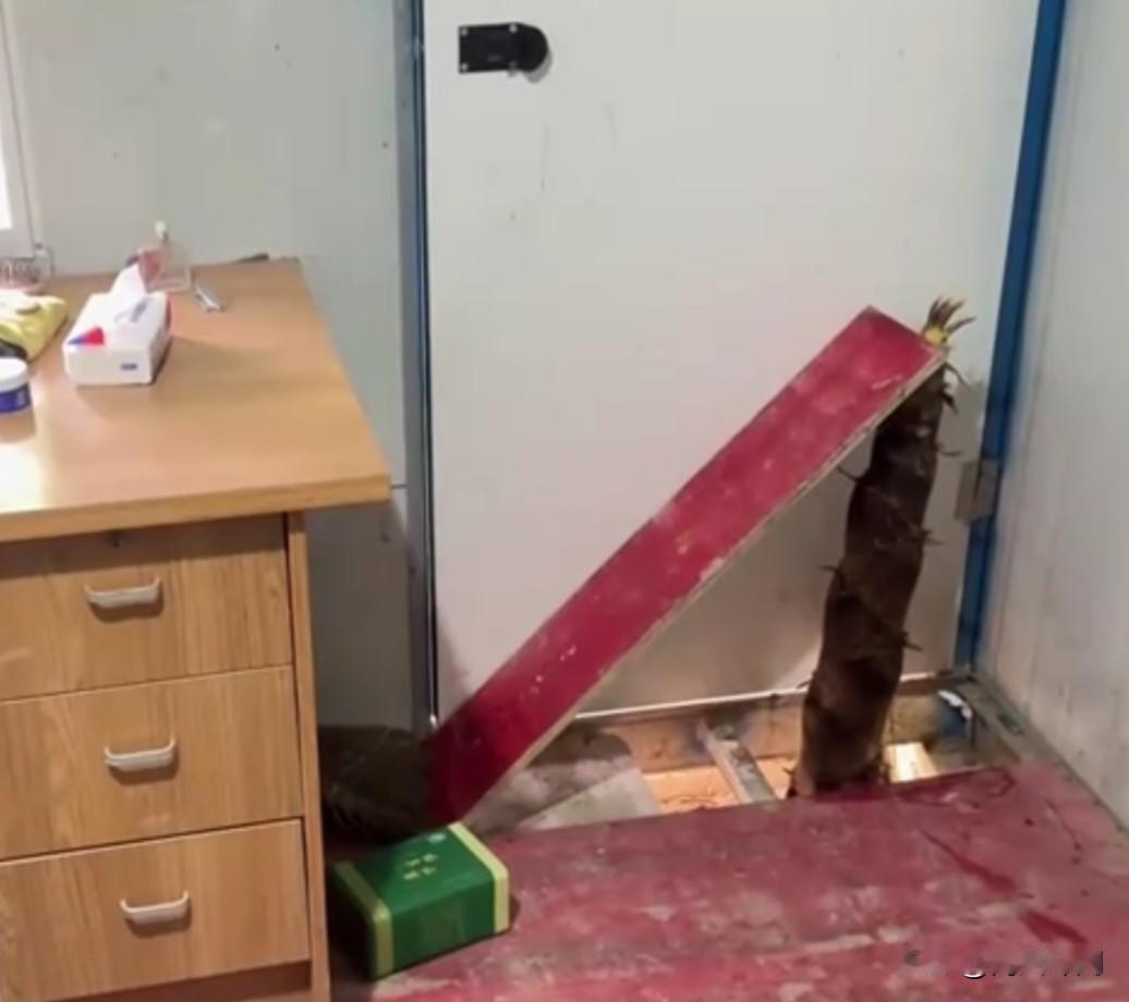 仔细一看,当场哭笑不得:家里地板居然长出一根粗壮的竹笋,硬生生把门顶得严严实实,完全推不开。