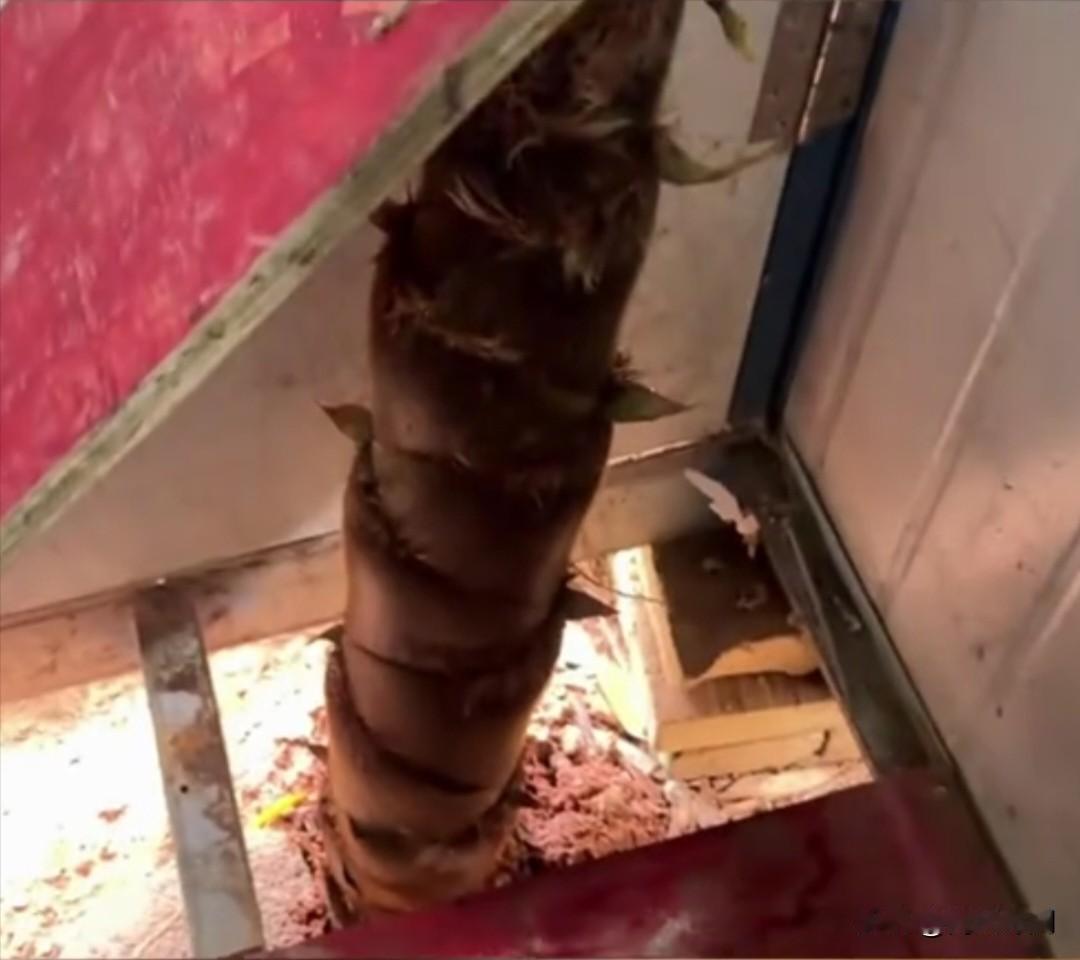 最后只能爬窗进屋,把这根“不请自来”的笋锯掉,才成功进门。