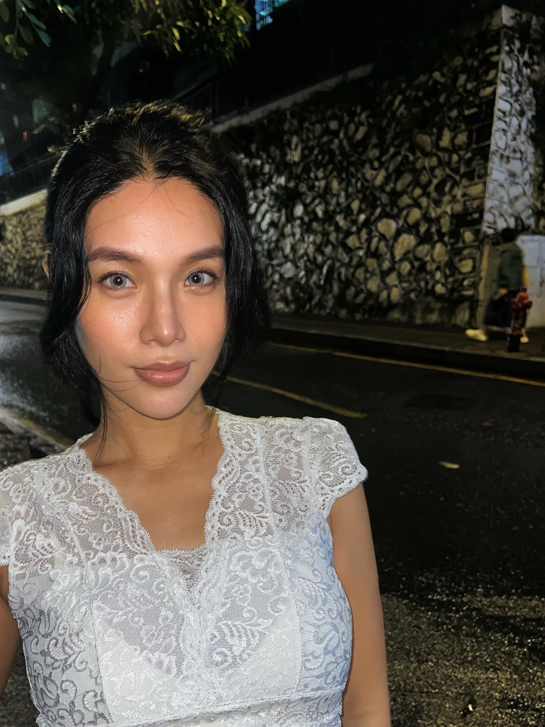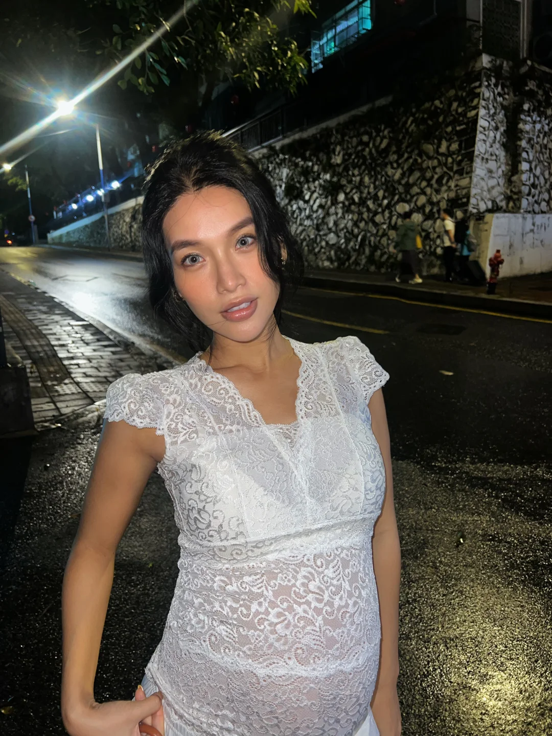 去年随手买的一件外贸蕾丝小衫