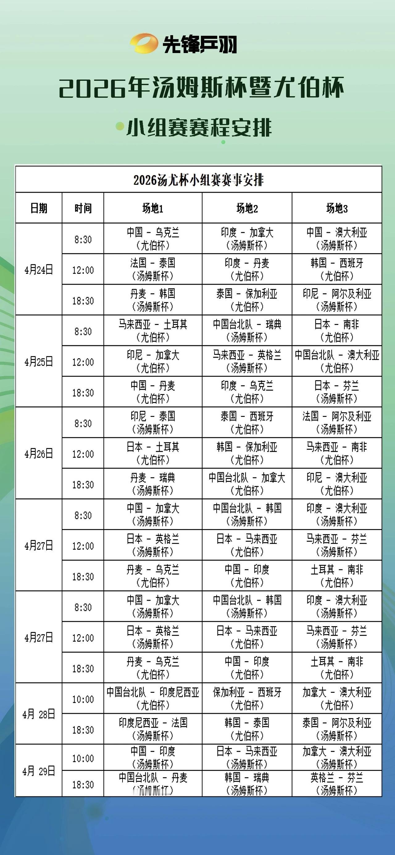 2026 年世界羽联汤尤杯小组赛赛程出炉,卫冕冠军中国队将在揭幕战中亮相。 4