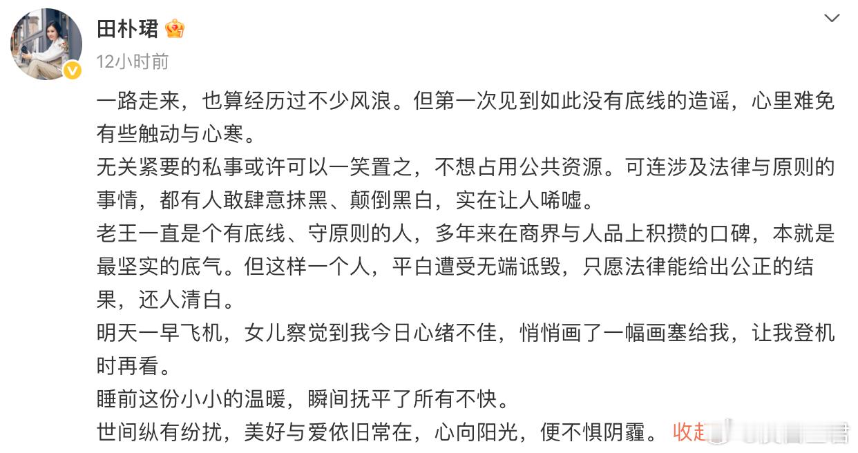 而到了深夜,田朴珺还是意难平,又继续发文: