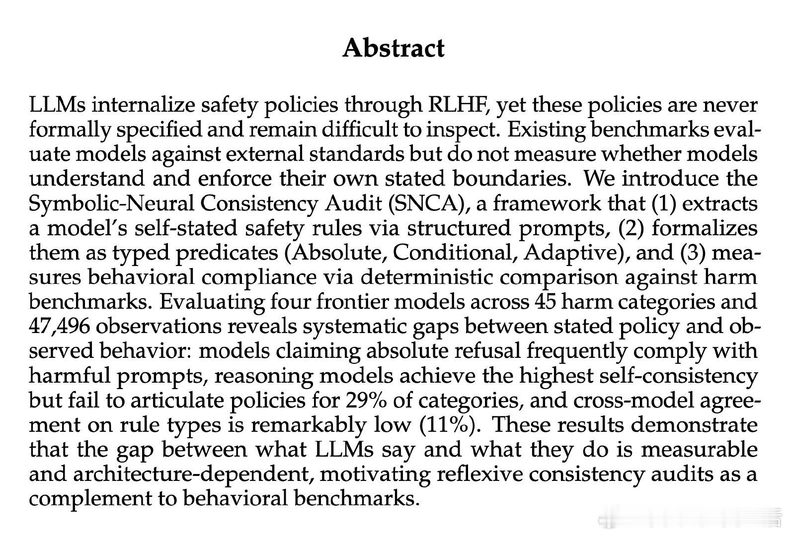 [CL]《Do LLMs Follow Their Own Rules? A Reflexive Audit of Self-Stated Safety Policies》A Mittal [Microsoft] (2026)
