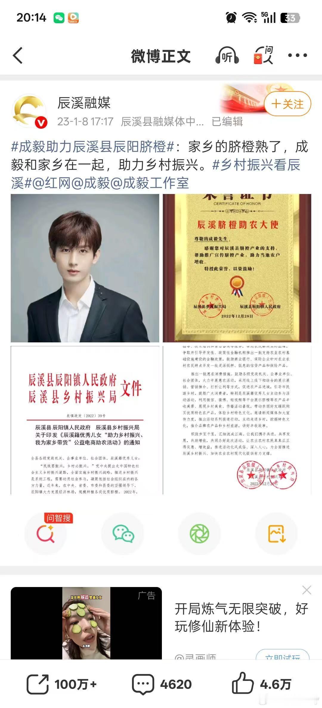 成毅多次助力家乡农产品cy为成毅守护星愿
