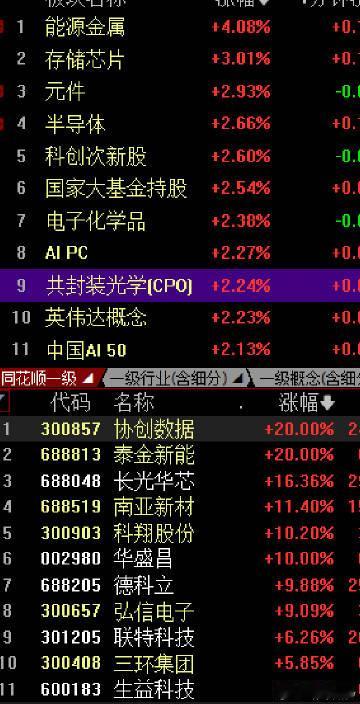 还是光通信,CPO光模块,光纤概念,存储芯片,半导体,pCB概念等领涨居前带动人