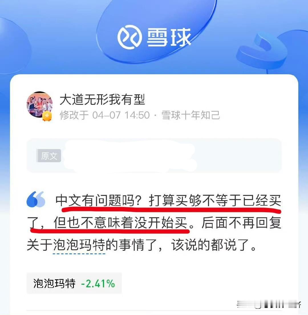 跌了一周后,今天开始骂人了,说:“打算买够不等于已经买了,也不等于没买”