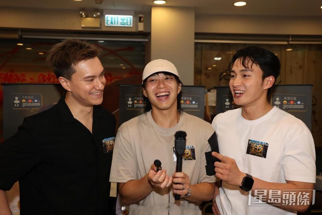 周嘉洛透露中午没吃饭,为了保住肌肉赶来现场时吞鸡蛋,吃到差点想吐。问到谁最痴迷健身餐和蛋白质,周嘉洛说是朱敏瀚,不仅讲究,还非常有食量,笑说400元的任食火锅,朱敏瀚可以吃出1200元的价值,还会帮大家“清碟”。问到会不会赏面吃吴业坤的生日蛋糕,两人互望一眼表示会。