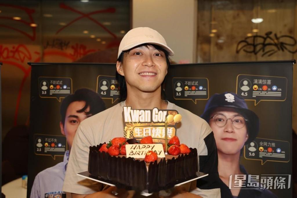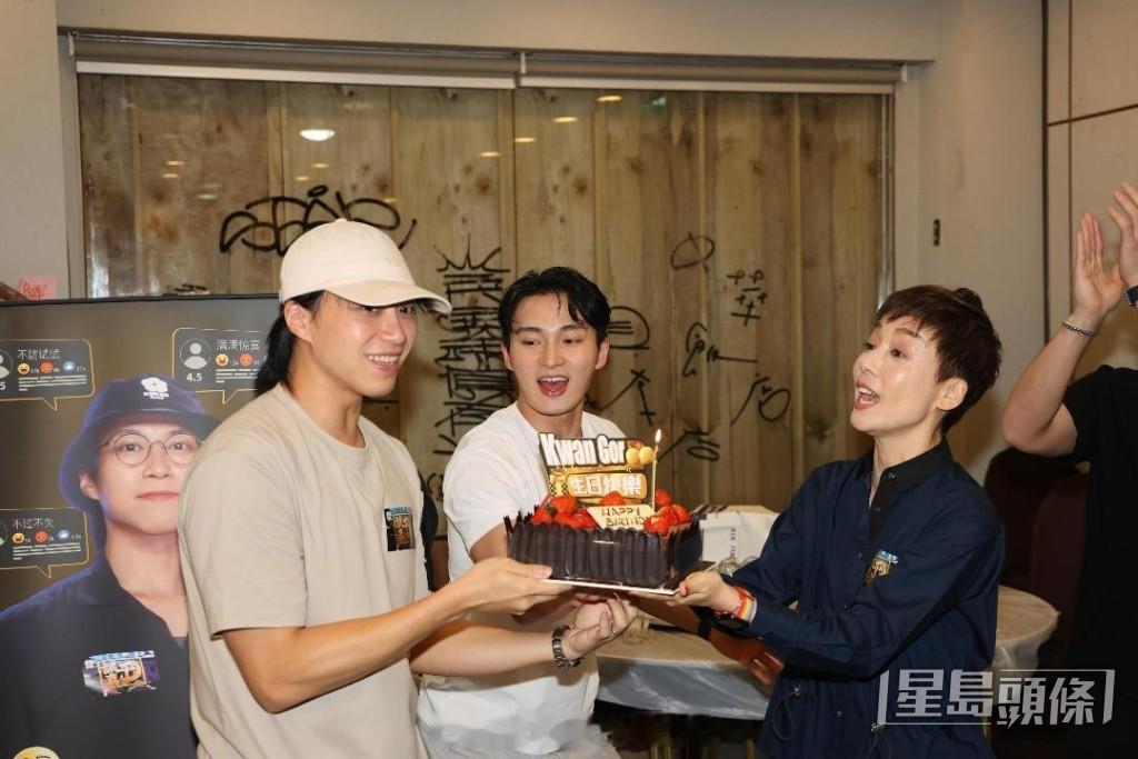 吴业坤、朱敏瀚、周嘉洛、江美仪等人到长沙湾出席节目《试真D》首播晚宴,并为将于本月18日踏入36岁的吴业坤庆祝生日。他更被朱敏瀚与周嘉洛夹在中间“食波饼”,吴业坤笑言这份大礼非常OK。问到生日愿望,他希望节目能继续拍下一季,生日当天会在深圳南山开唱,叫两人买票支持,笑说不到场也可以。问到想不想做爸爸,吴业坤即时拒绝,笑称还有很多事想做、需要去实现,又指自己本身也像小朋友,打算多赚几年钱再考虑。