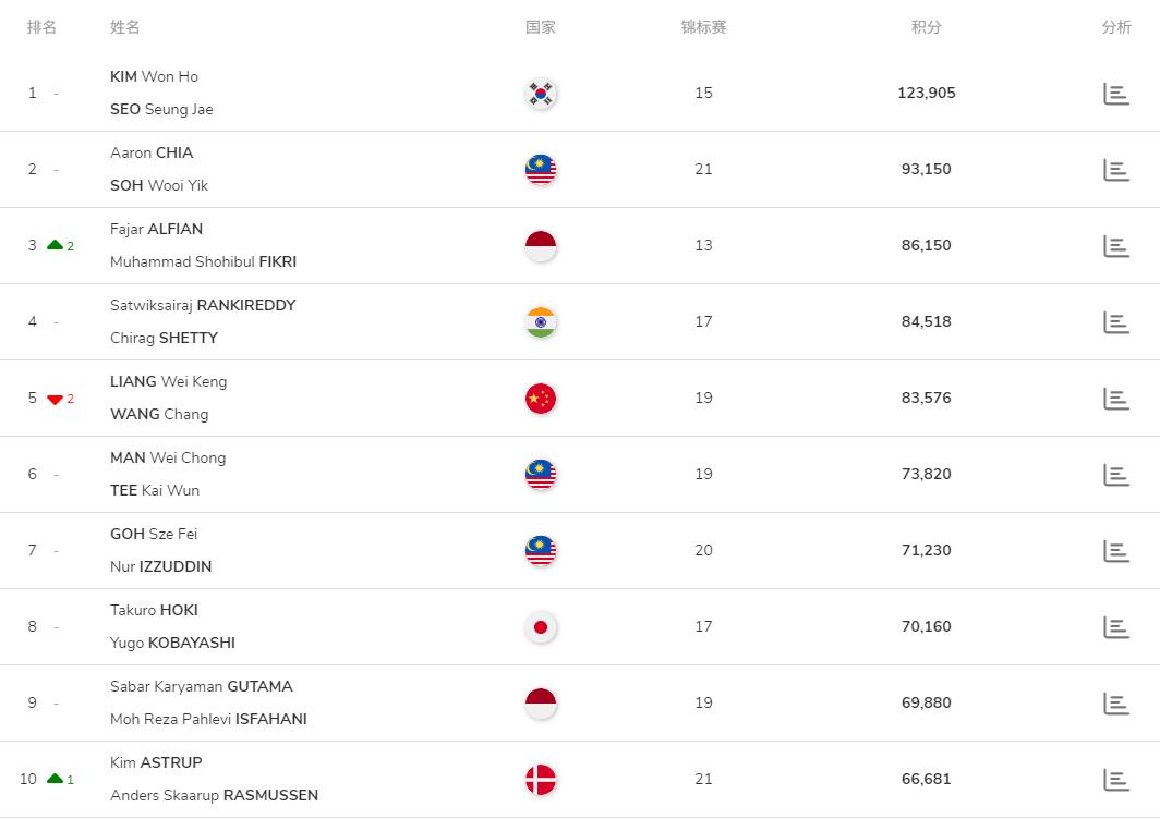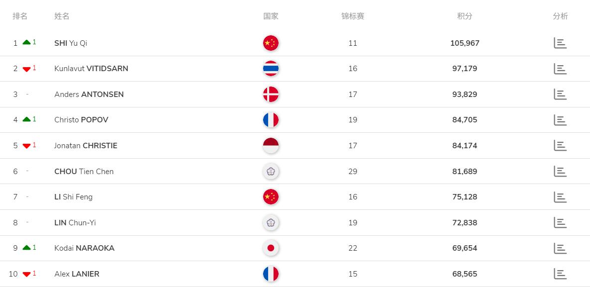 世界羽联2026年第16周世界排名公布,石宇奇世界排名重回第一!