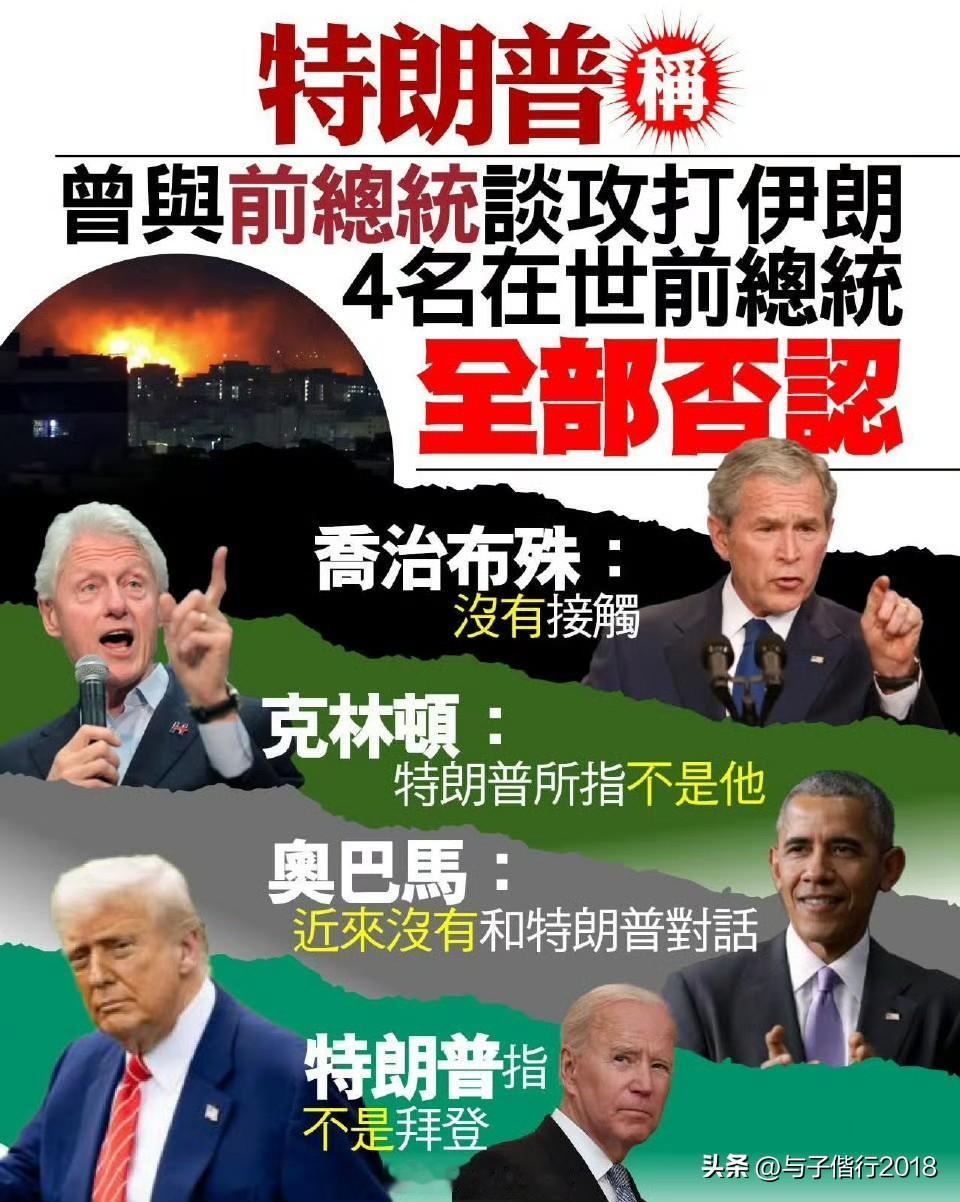 美国目前共有4位在世前总统,分别是共和党布什,民主党克林顿、奥巴马和拜登。经过记者的持续跟进,4个老头全部否认。特朗普雷人言论