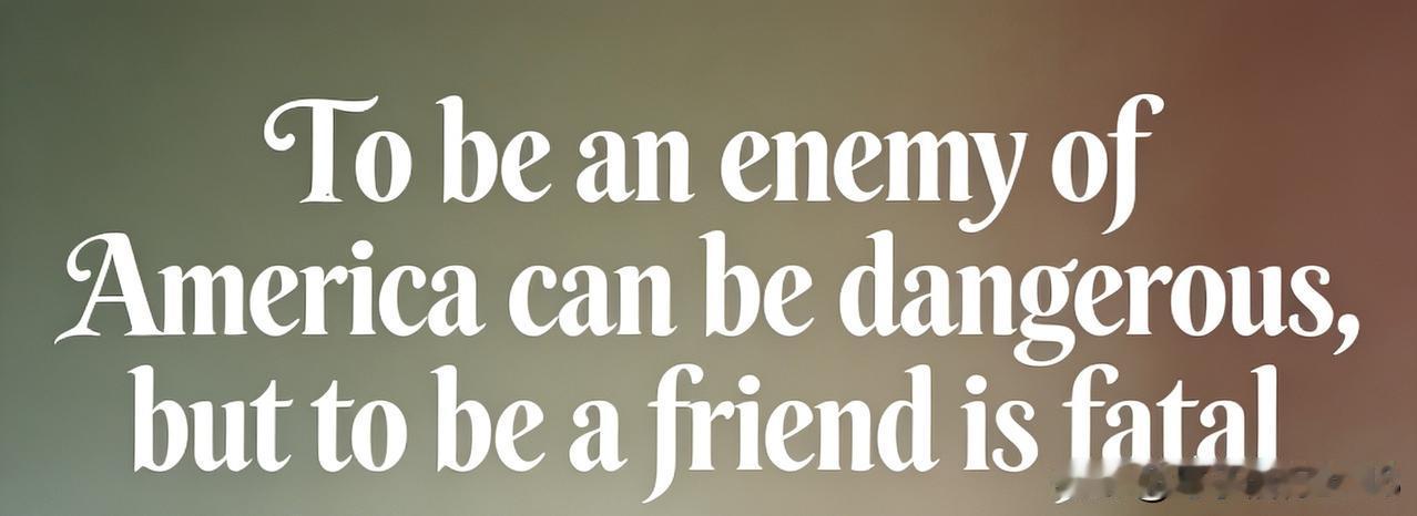 基辛格有一句名言:To be an enemy of America can be dangerous, but to be a friend is fatal(当美国的敌人很危险,做美国的盟友更要命)。“古人”诚不欺我也。