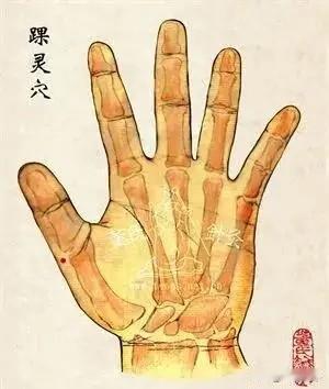 【定位】:踝灵穴位于手大拇指掌面第一节指骨与大拇指掌骨之间。