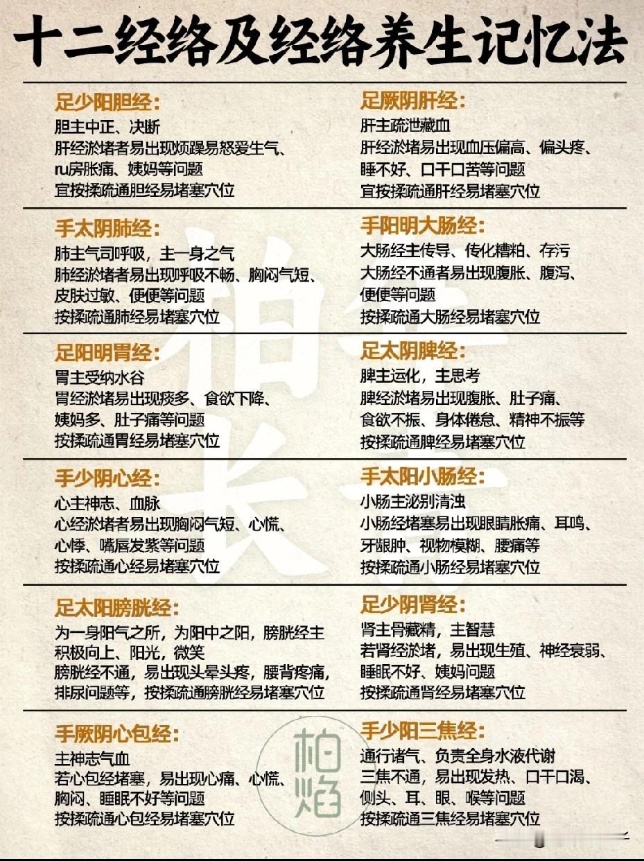 十二经络速记法㊙️所对应的经脉经络养生