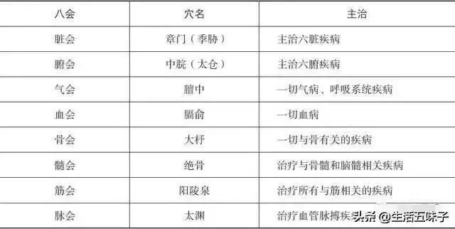 人体的“脏腑气血、筋脉骨髓”的精气汇聚形成的“八会穴”