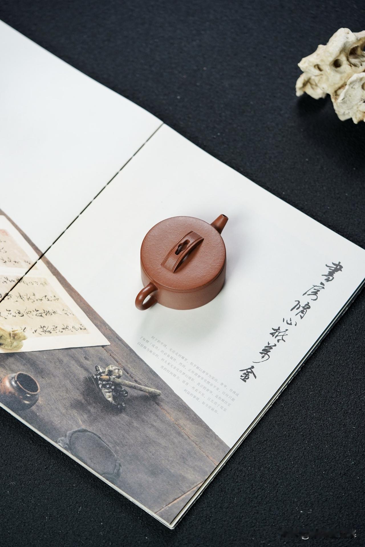 遇事会调整自己,从容面对,接受最坏的,争取最好的。就有这么一位被壶友戏称为“怨妇”的大老爷们儿,自打买了知了为钮、竹段为身的“知足常乐”壶,也渐渐少了牢骚和抱怨。紫砂铭文及壶形寓意,启智通慧,平和安气。养壶也养气质,洗壶也洗性情。