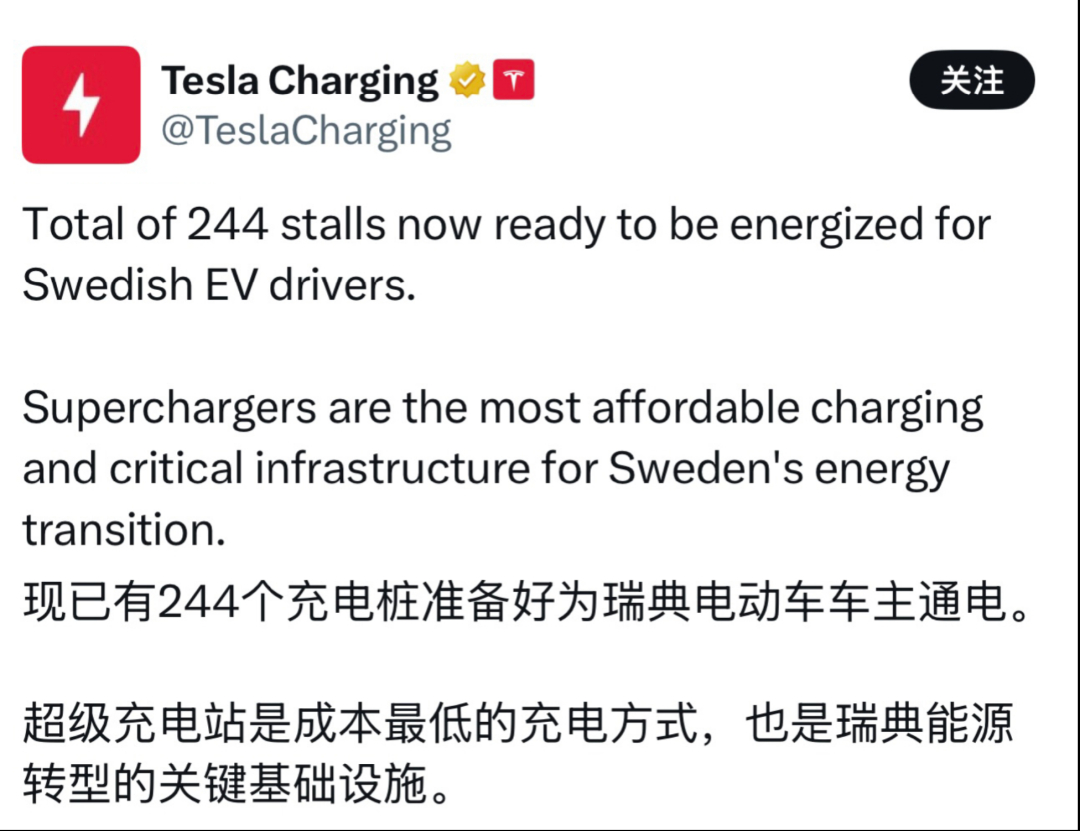 暴涨96%!特斯拉瑞典3月销量翻倍,244根超充桩建成投用