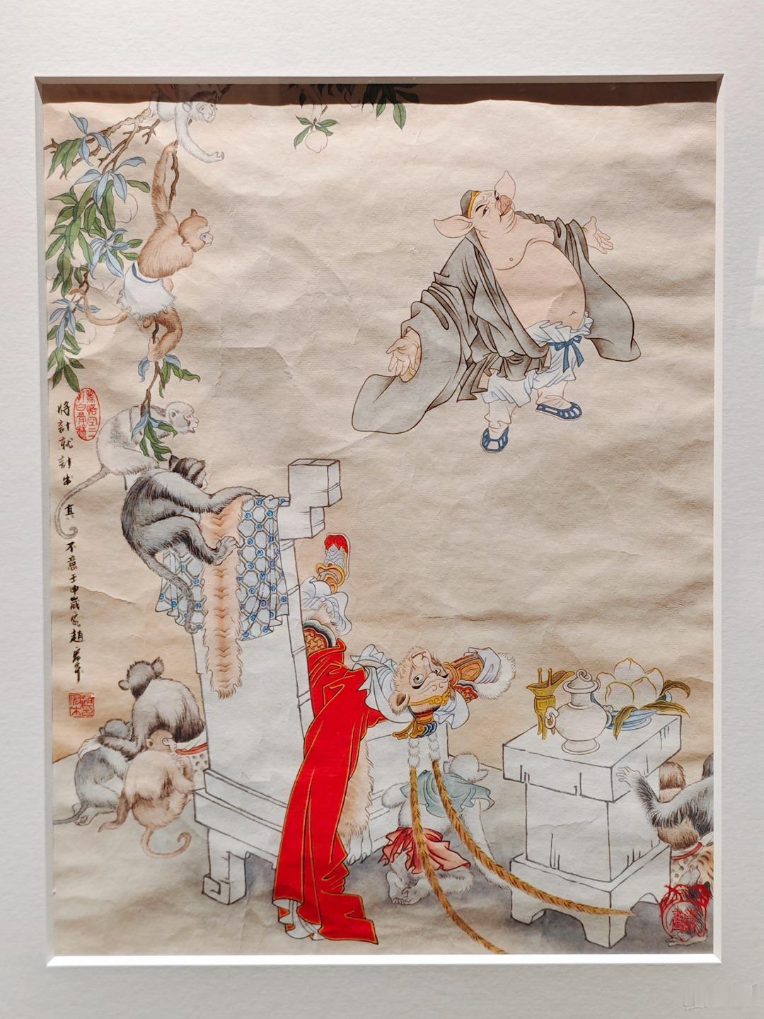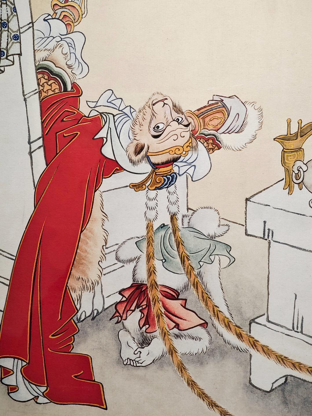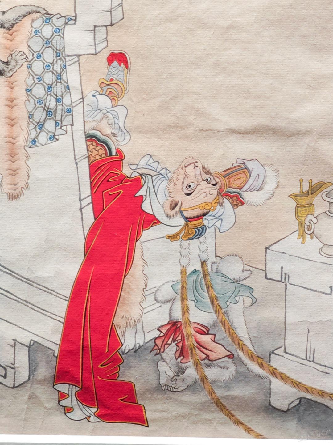 继续分享彩色三打原稿,这不是1963年初稿,而是赵宏本先生1992年重描版,悟空倒躺在石椅的样子特别帅,旁边小猴子顽皮可爱,值得放大细节欣赏。照片摄于广州美术馆&广州人民艺术中心。
