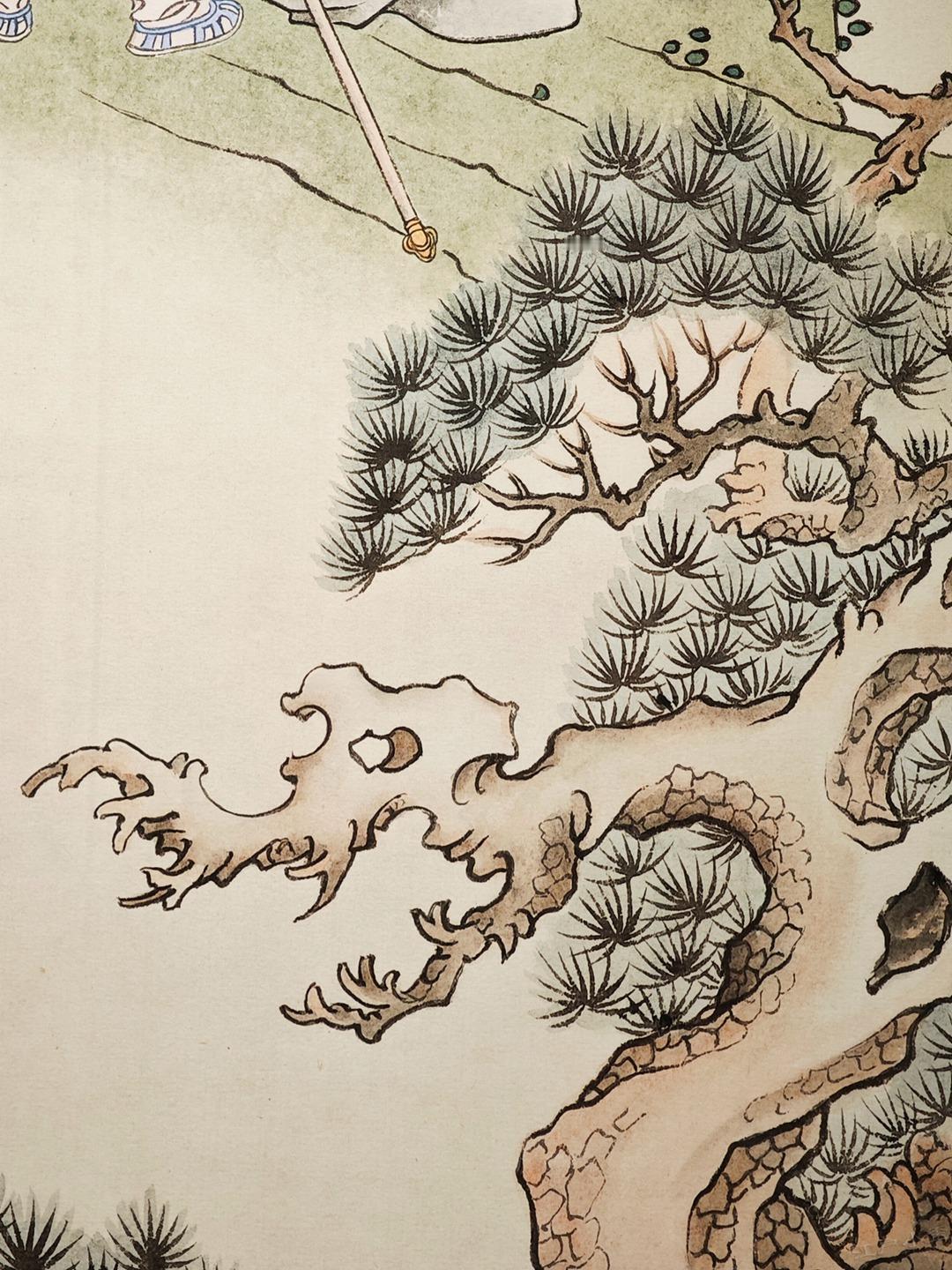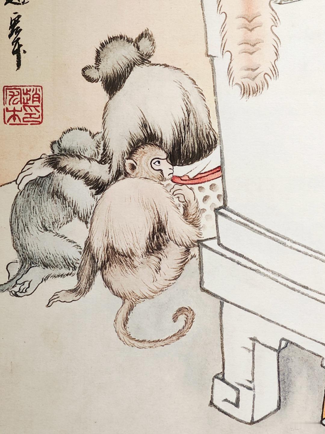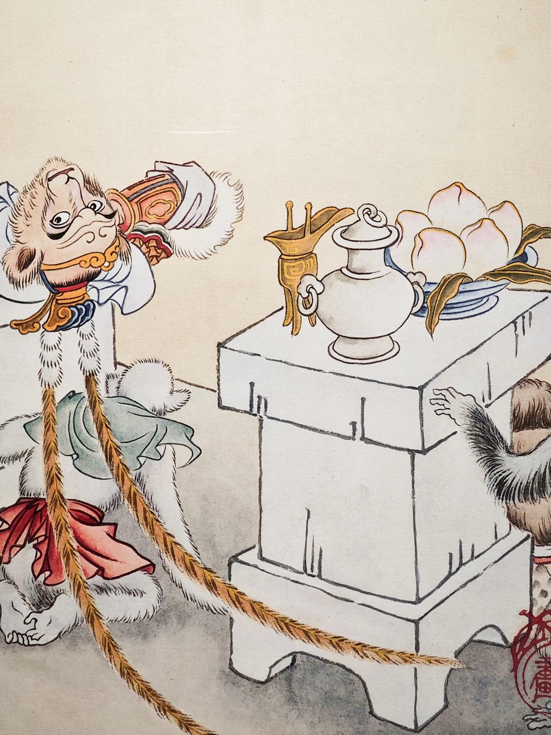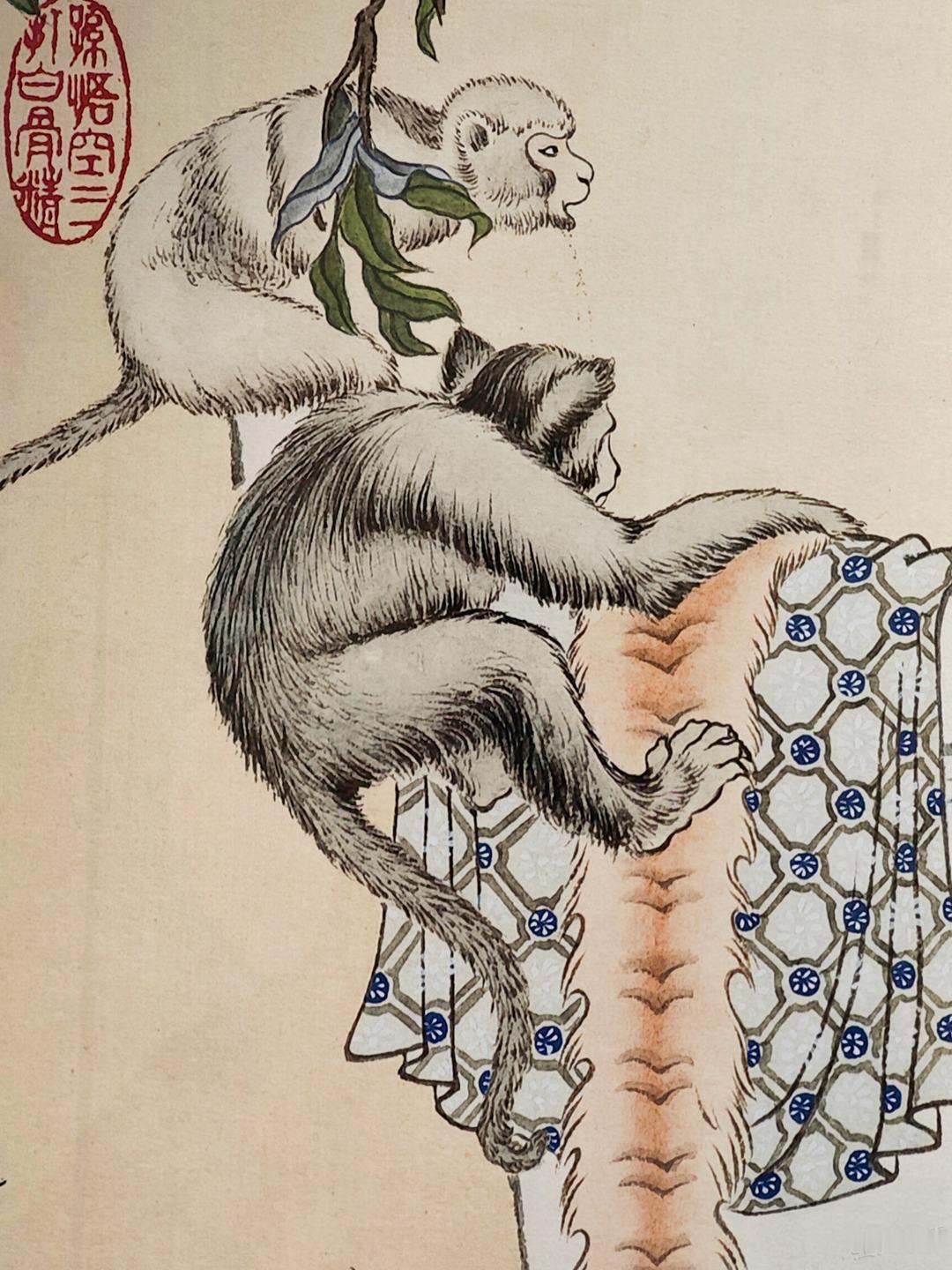 继续分享彩色三打原稿,这不是1963年初稿,而是赵宏本先生1992年重描版,悟空倒躺在石椅的样子特别帅,旁边小猴子顽皮可爱,值得放大细节欣赏。照片摄于广州美术馆&广州人民艺术中心。