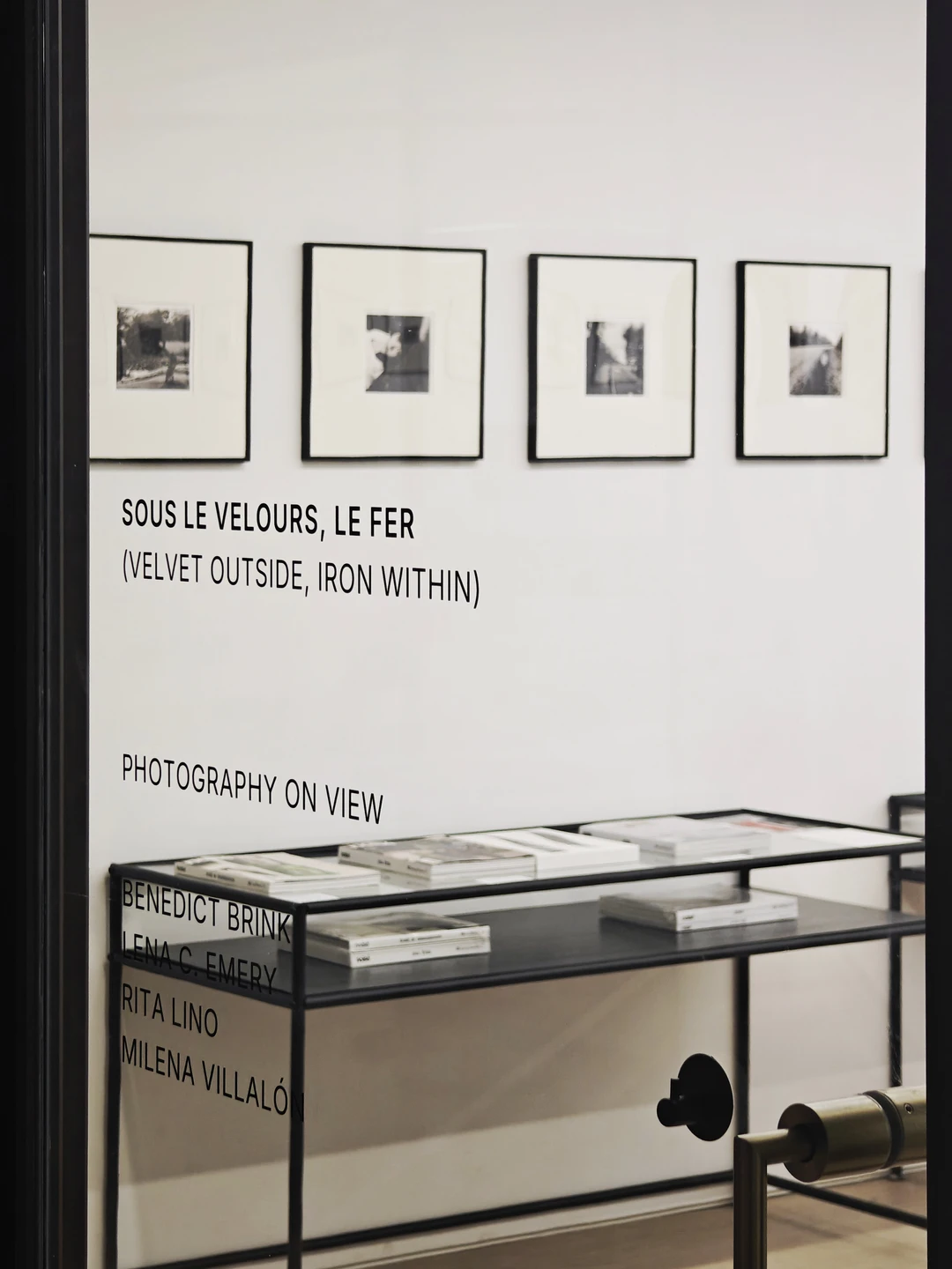 两侧墙面悬挂的是Benedict Brink、Lena C. Emery、Rita Lino和Milena Villalón四位女性艺术家的摄影作品,以私密的个人生活为入口,把私人的观看与记忆,转化为可被阅读的视觉文本,为整个空间的文本阅读,补充了感性的维度。