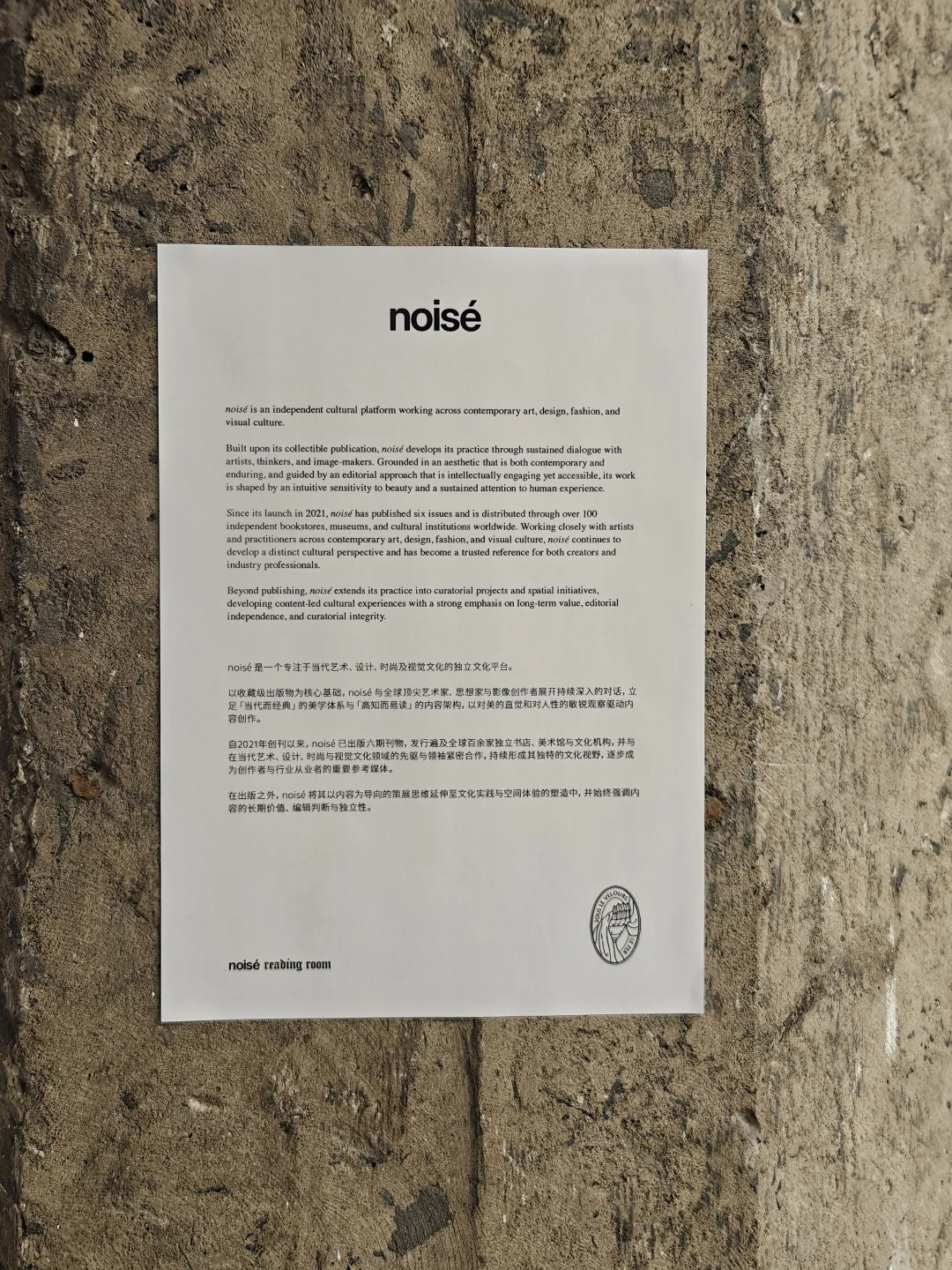 又一次来到苏河皓司,每次都如同刷手机一般快速地在几个楼层间刷展,这一次,我却在2楼悄悄冒出来的NOISÉ READING ROOM停下了浮躁的脚步。
