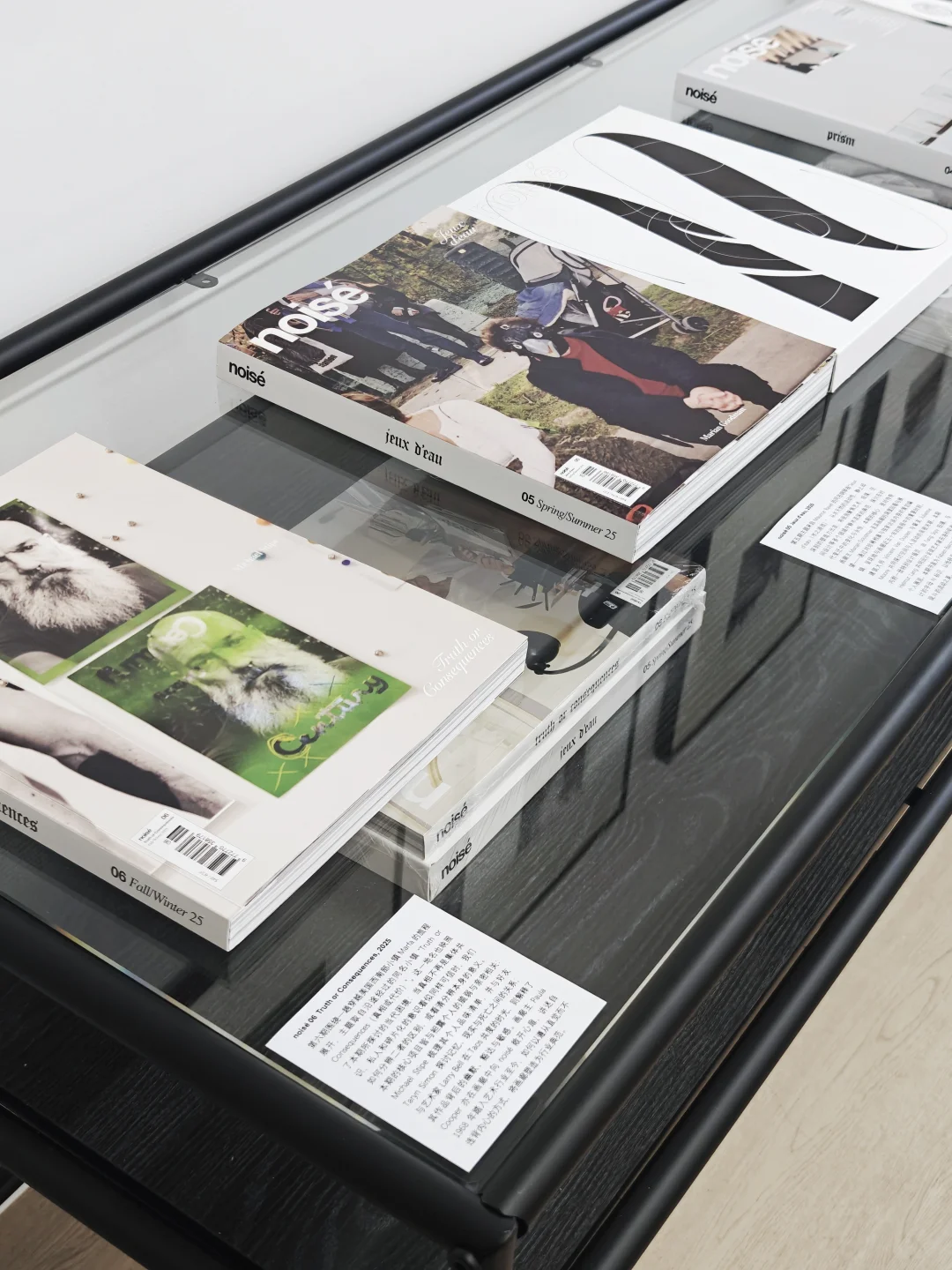 《NOISÉ》创刊至今的6期杂志、空间里的摄影作品、灵感歌单,还有艺术家持续更新的灵感板,共同构成了一个不断生长的档案库。