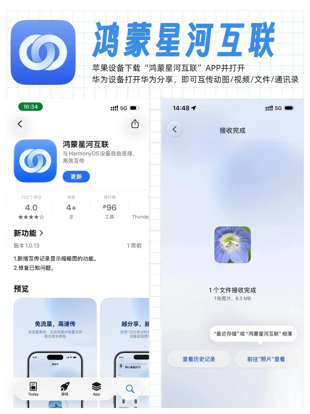 华为手机 数码资讯 鸿蒙6 华为苹果互传 鸿蒙星河互联 ios 苹果手机 互传 传动图 动图iPhone